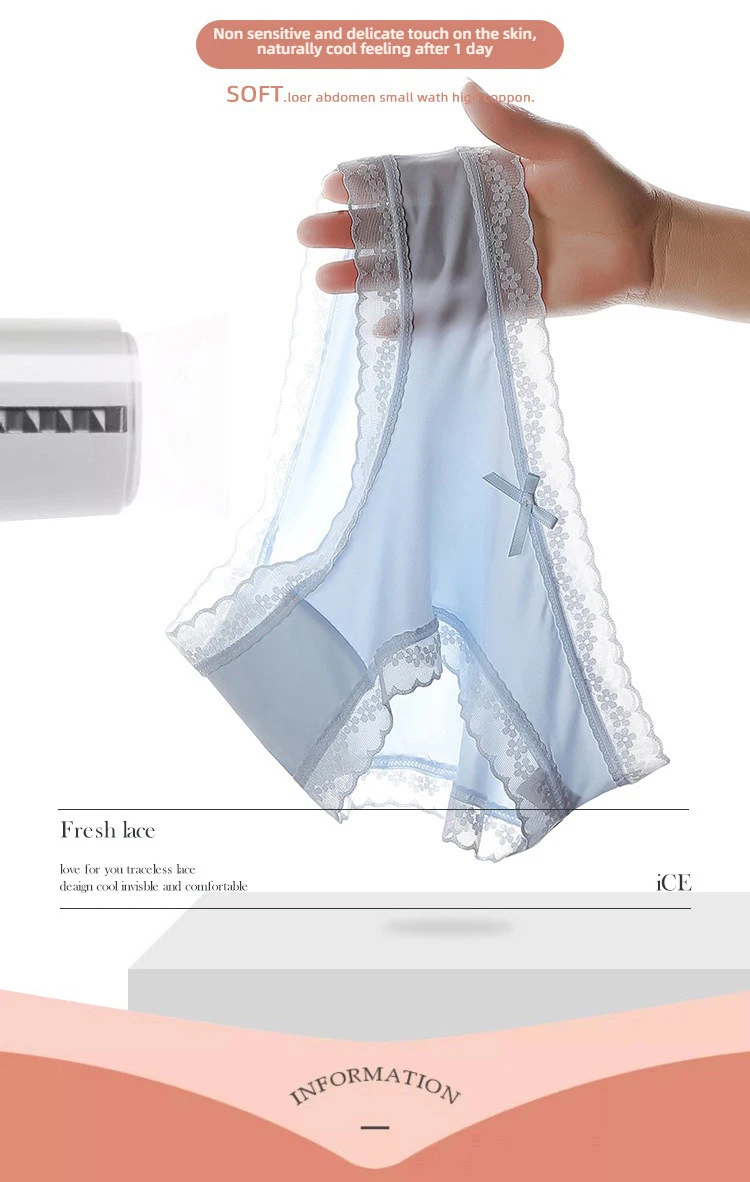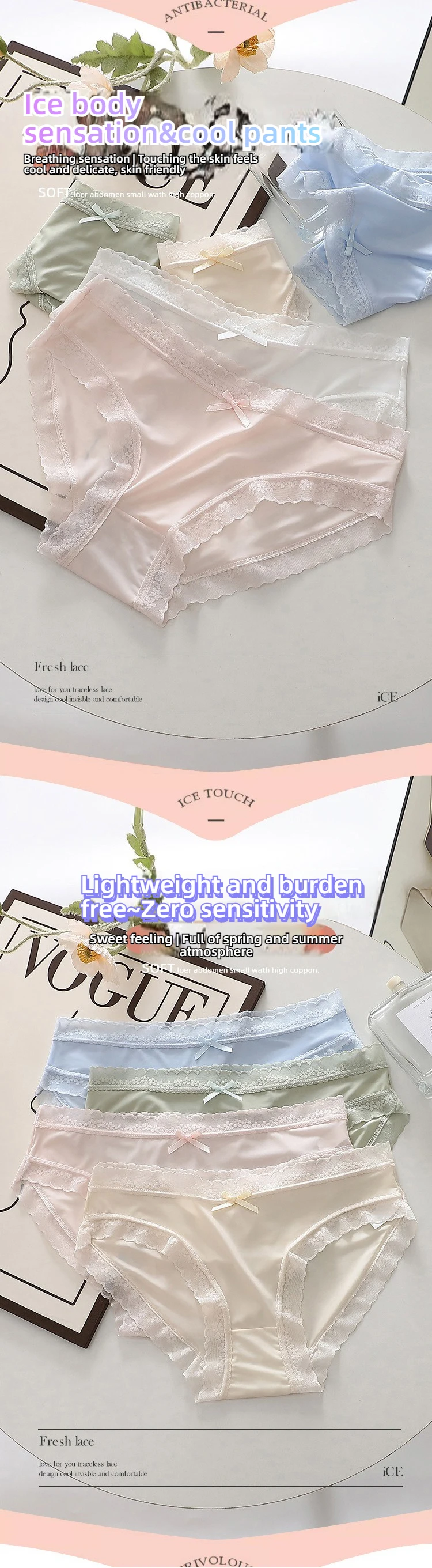 3PCS/Set Seamless Panties Ice Silk Lace Perspective Briefs Ultra Thin Breathable Underwear Cool Summer Female Sexy Lingerie