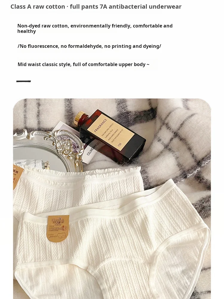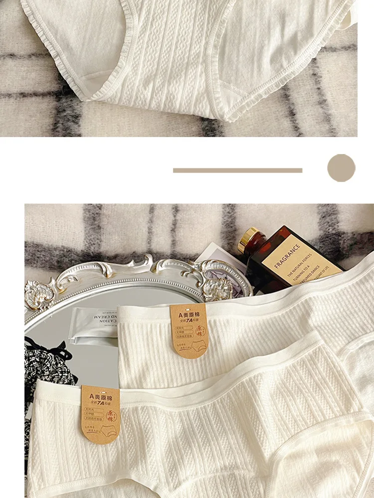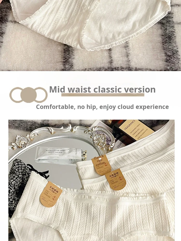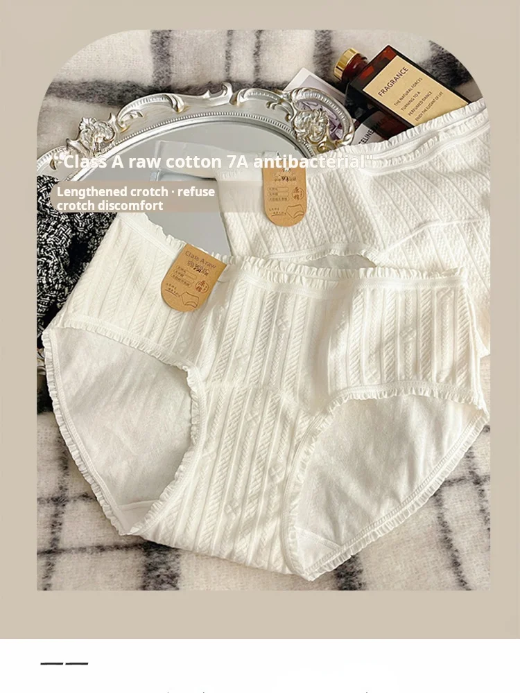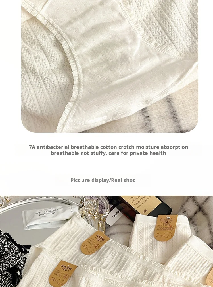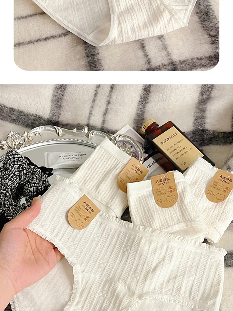 4-pack White Women's Underwear, A-class Pure Cotton Underwear, Extended 16cm A Antibacterial Cotton Crotch Girls' Triangle Pants