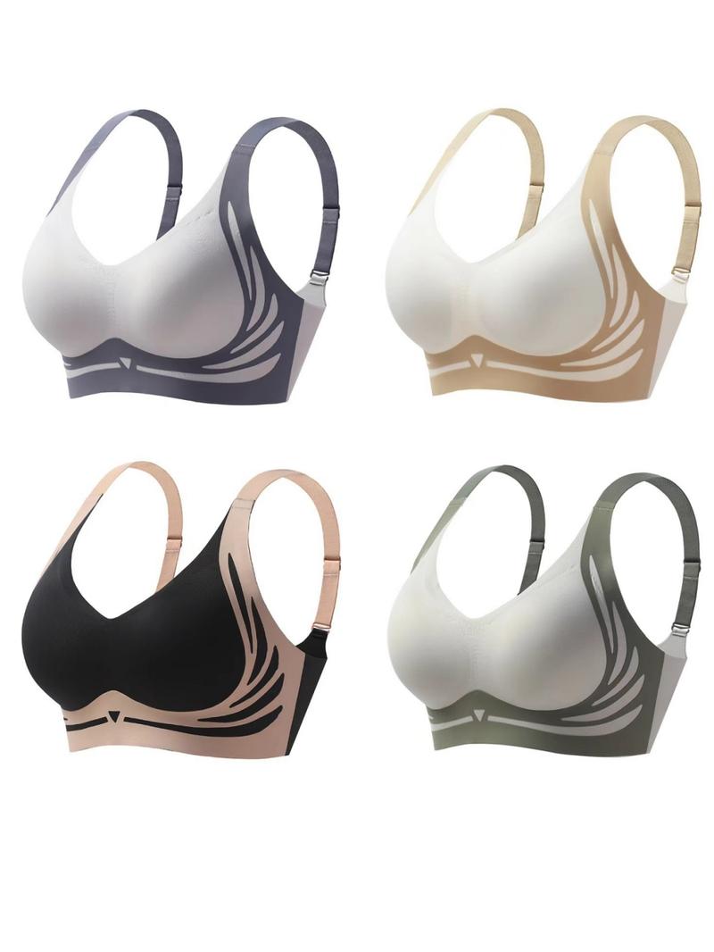 4-Piece Set of Luxurious Anti-Gravity Push-Up Bras - Comfortable,Non-Scarring, Underwire-Free, Gathering, and Closing Design for a Perfect Fit - Ideal for Everyday Wear Nylon Spandex Womenswear Bralette Casual Crochet Knitted Underwear Geometric