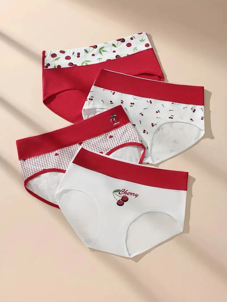 4Pcs Cotton Women Panties High Waist Underwear Print Pantys Ladies Briefs Breathable Plus Size Underpants Sexy Female Lingerie