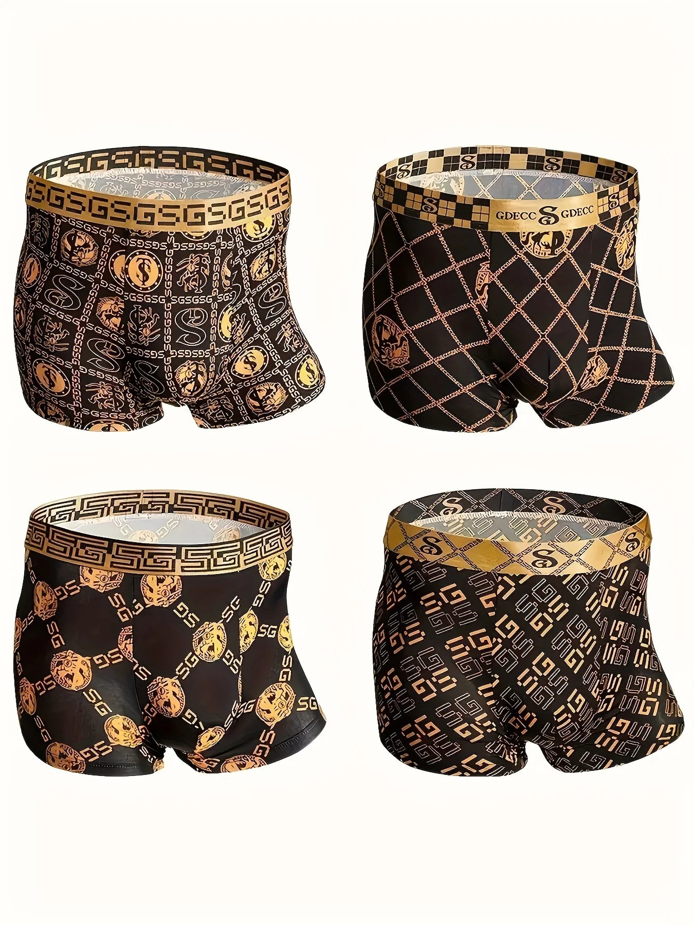 4pcs Mens Ultra-cooling lce Silk Boxer Briefs - Super-breathable, Antibacterial,Luxuriously Soft & Comfy - High Stretch, 4-Piece
