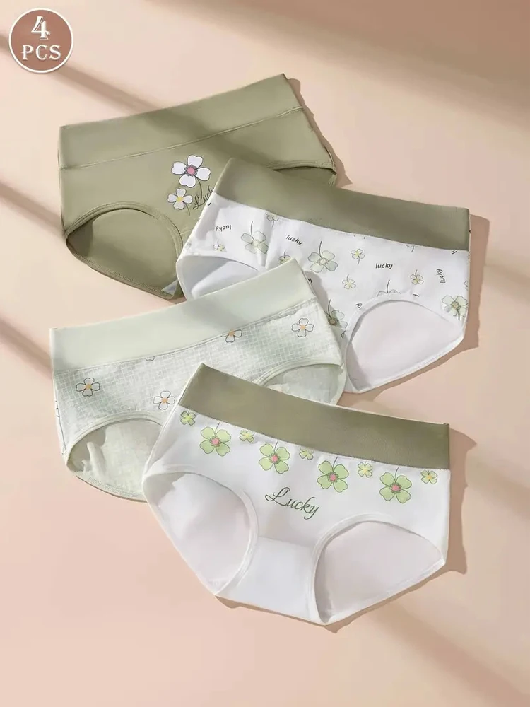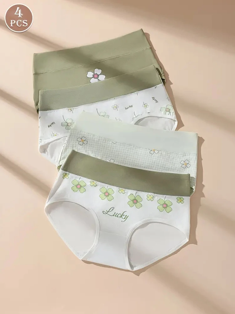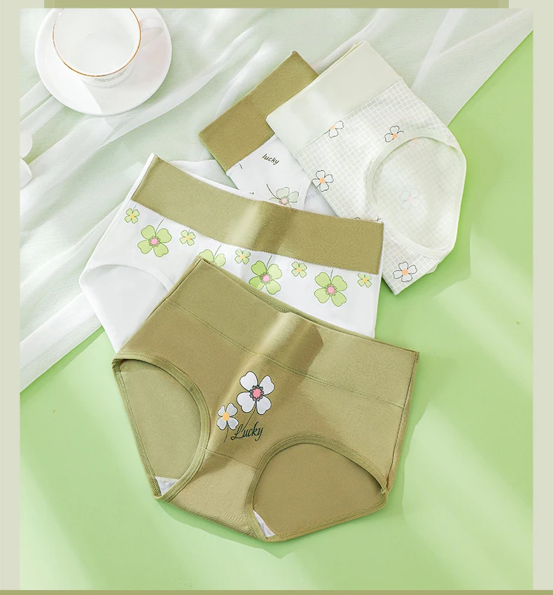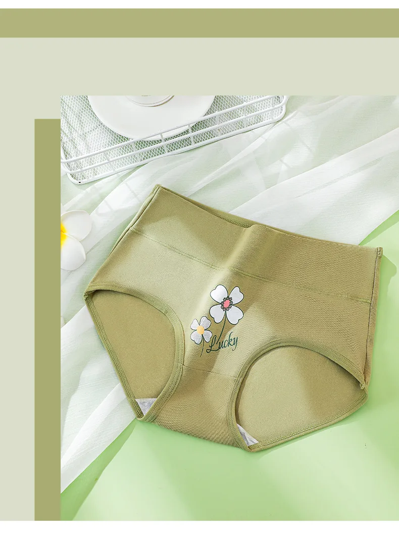 4Pcs/Set High Waist Underwear Cotton Women Panties Fashion Print Ladies Briefs Sexy Panty Breathable Female Lingerie Plus Size