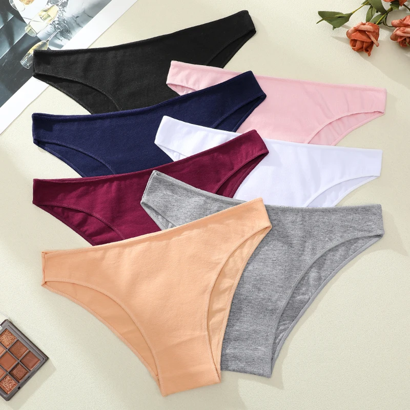 4PCS Women's Cotton Seamless Panties Sexy Low Waist Solid Color Underwear Female Breathable Briefs Soft Comfortable Lingerie New