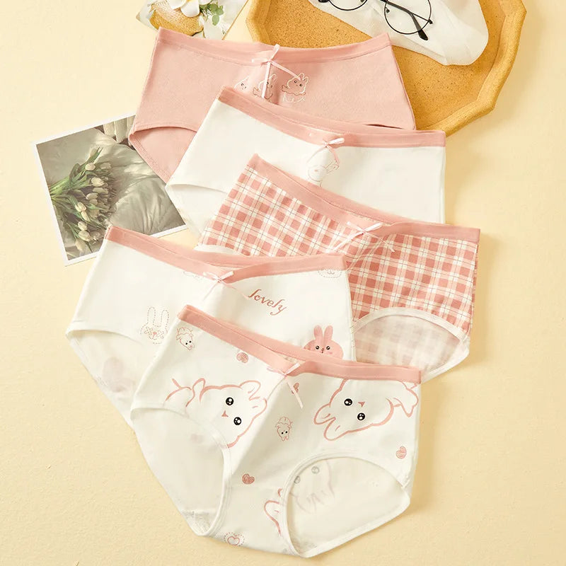 5Pcs Cute Print Young Girls Briefs Cotton Panties Women Breathable Underwear Sexy Low-Rise Ladies Underpants Female Lingerie