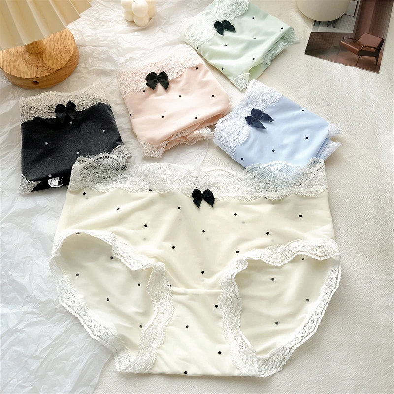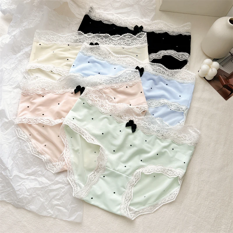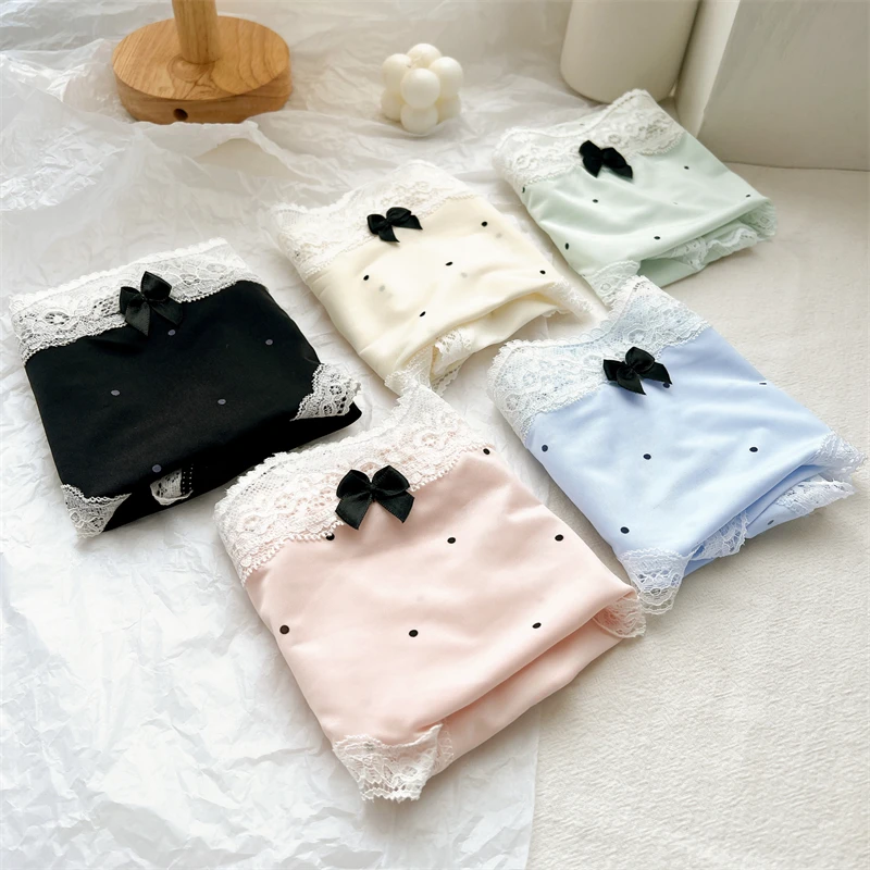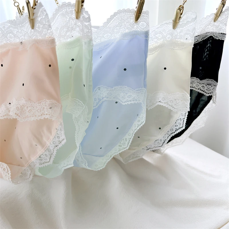 5PCS/Lot Lace Floral Underwear Women Sexy Ice Silk Perspective Panties Female Low Waist Breathable Briefs Soft Stretchy Lingerie