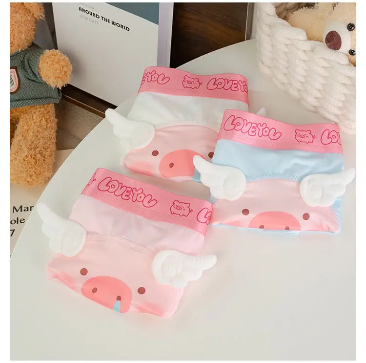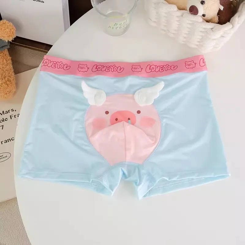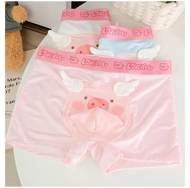Cute Boys Flat Boxers Ice Silk Pink Piggy Men Underwear Cartoon U Convex Pouch Boxer Shorts Summer Panties Briefs Boyfriend Gift