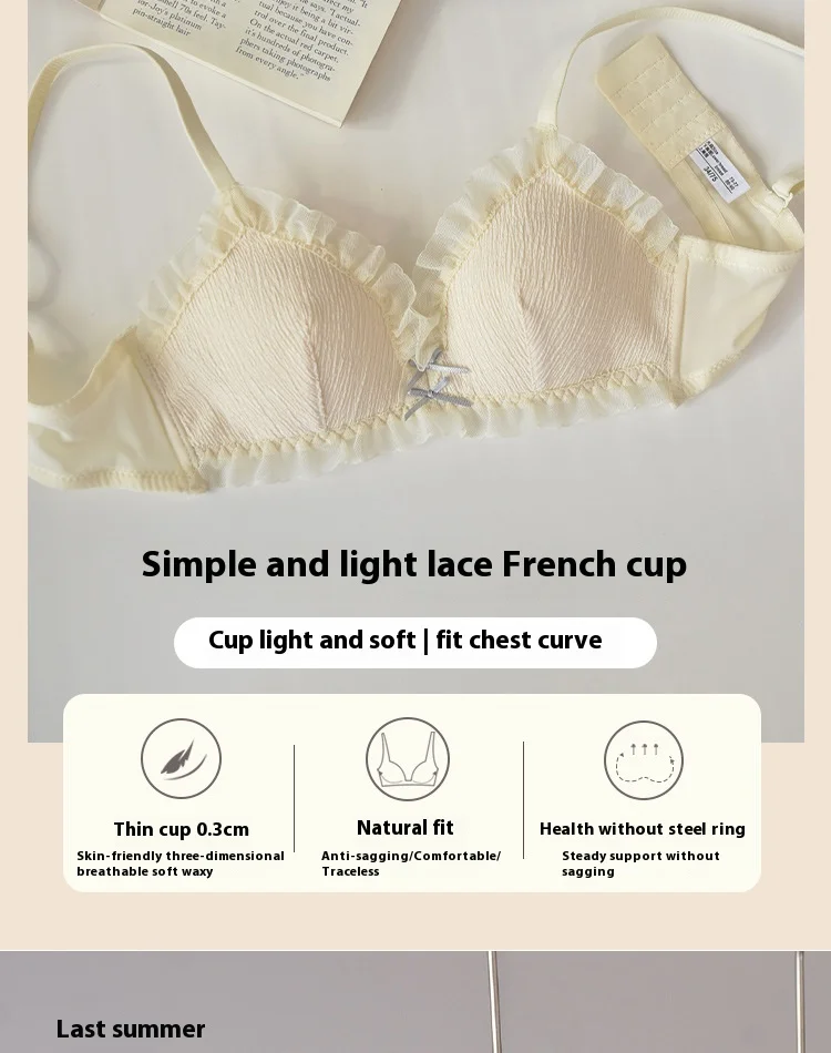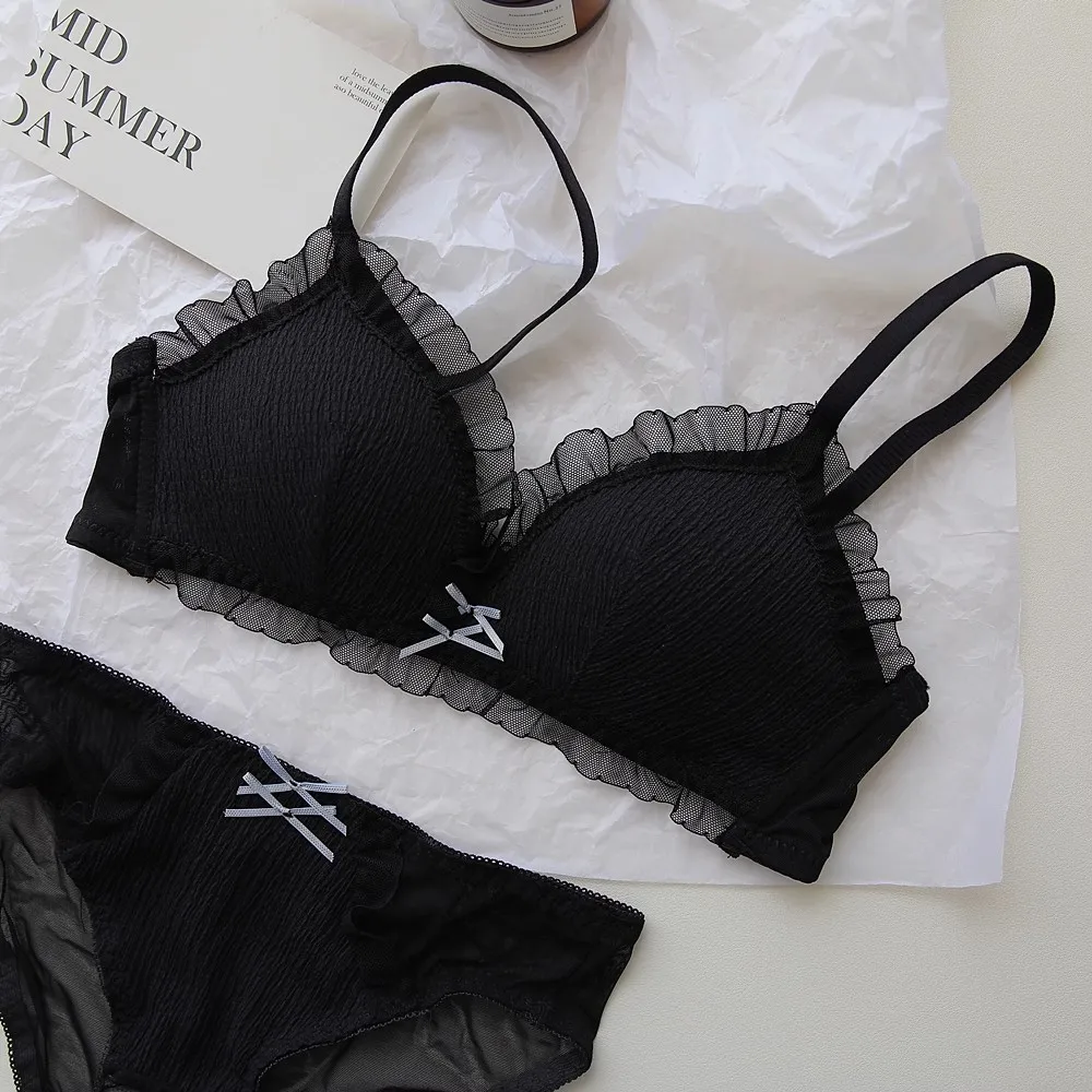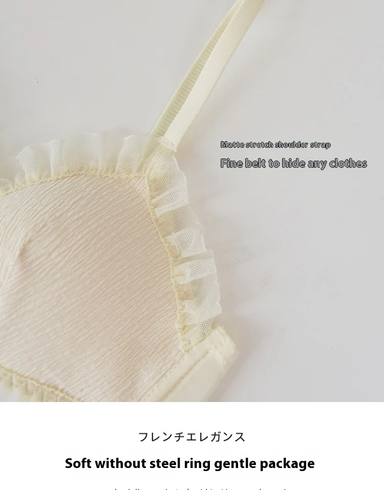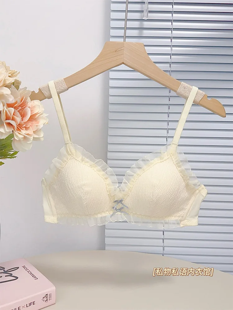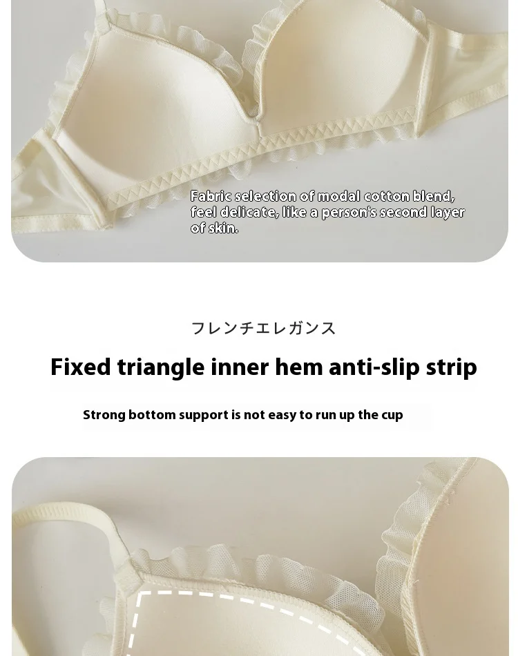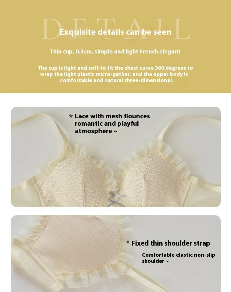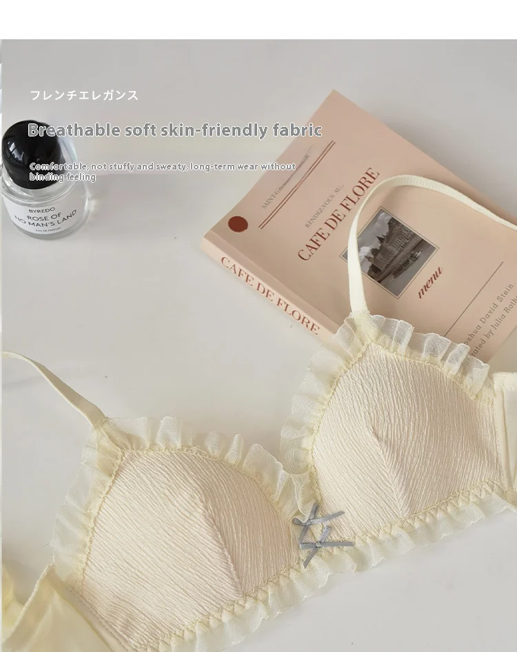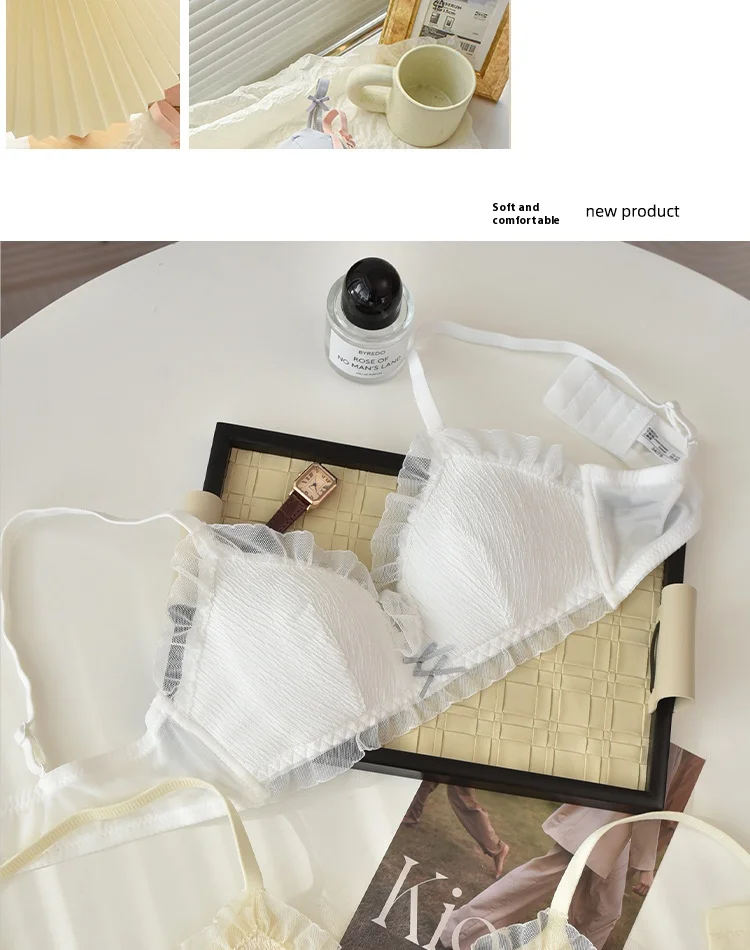 French Lace Triangle Cup Girls Underwear Thin Section Mesh Texture Sense of Small Breasts Gathered Without Steel Ring Bra Set