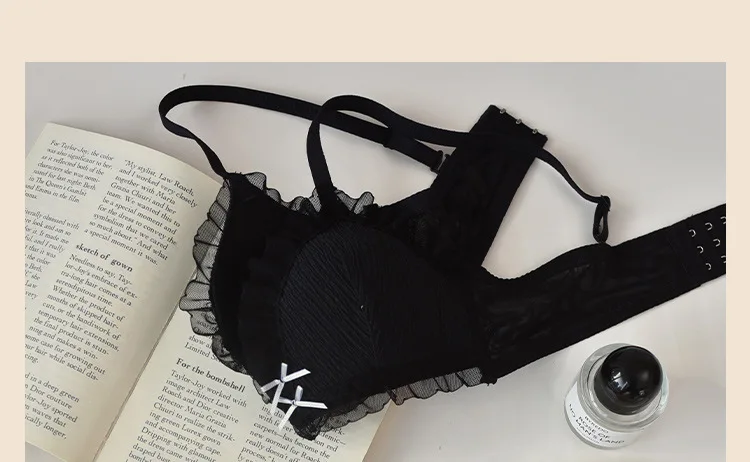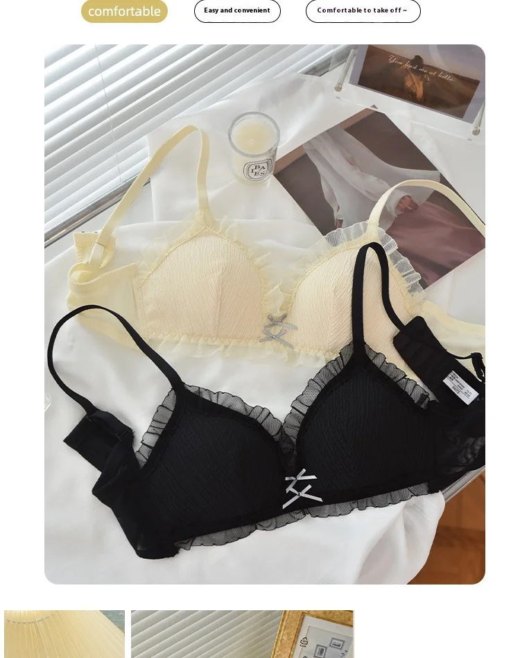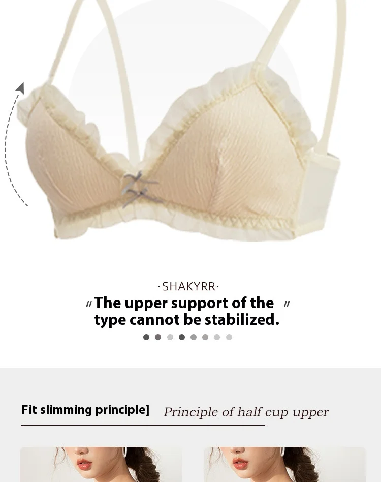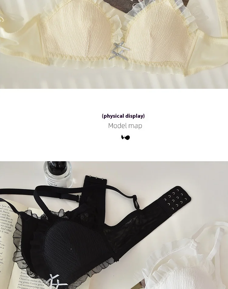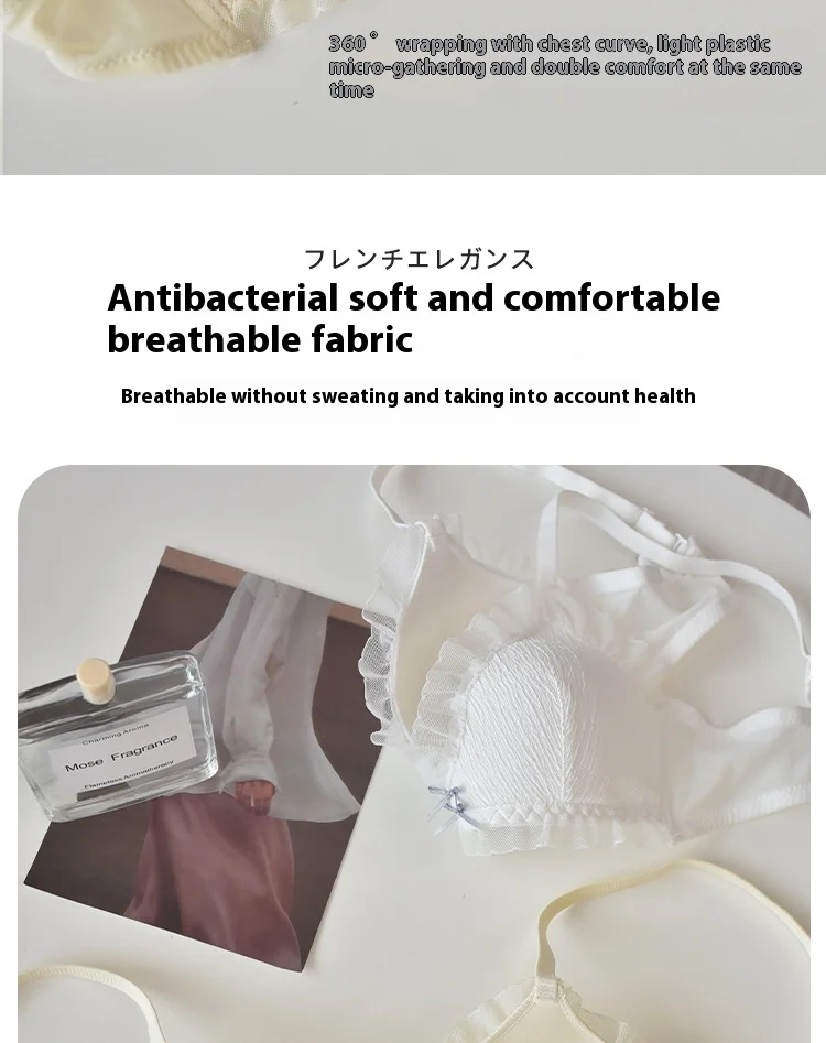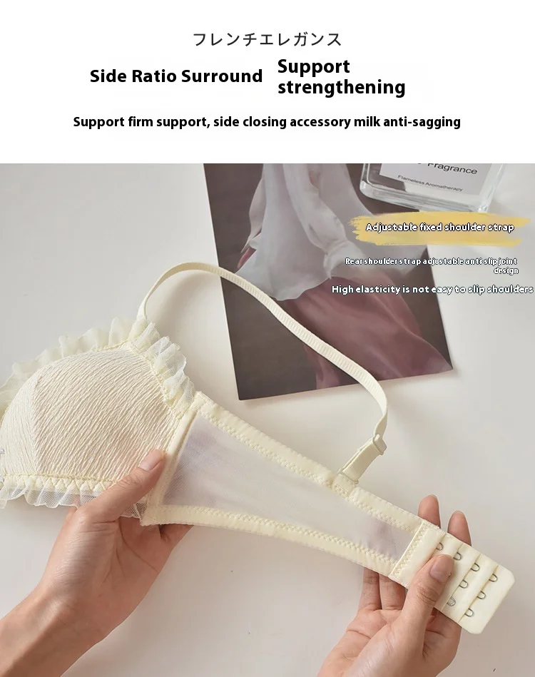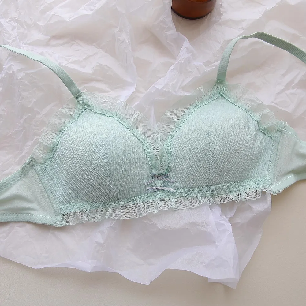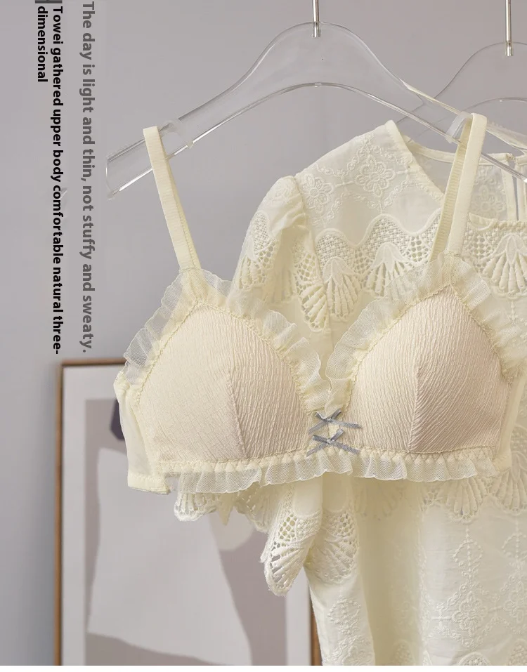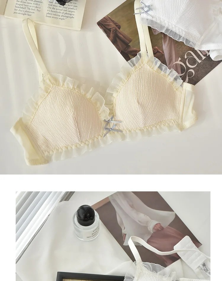 French Lace Triangle Cup Girls Underwear Thin Section Mesh Texture Sense of Small Breasts Gathered Without Steel Ring Bra Set