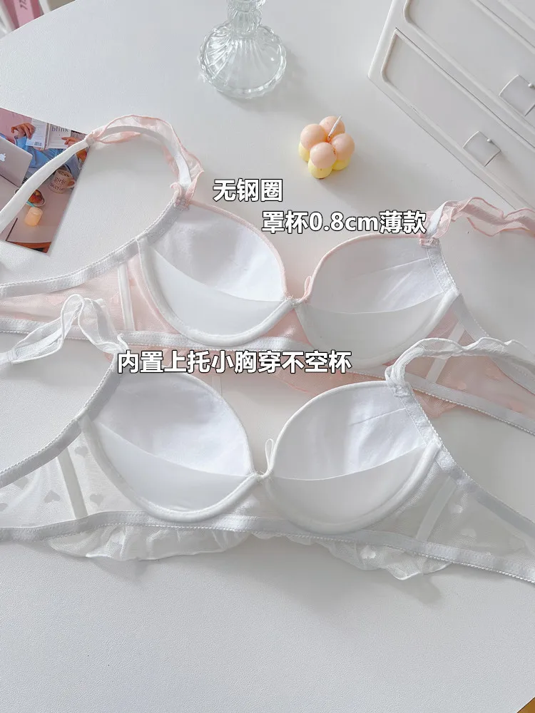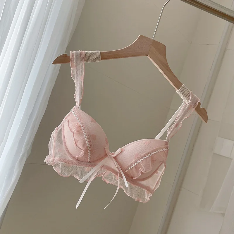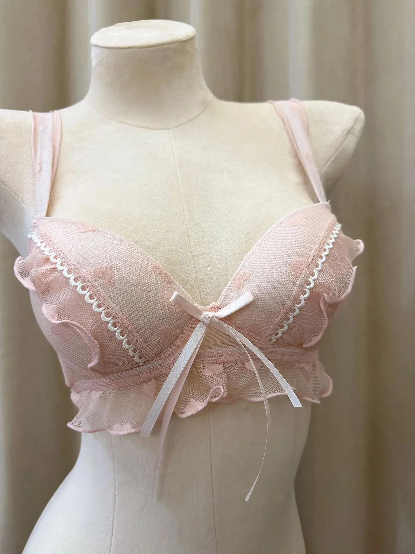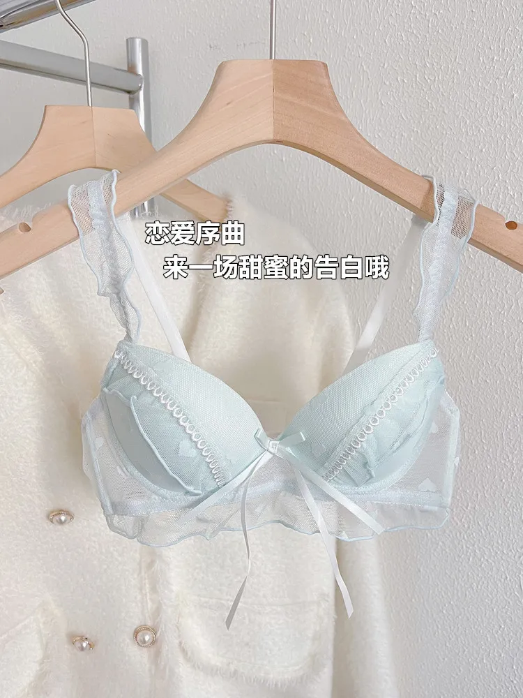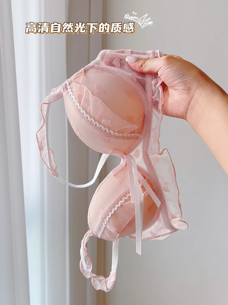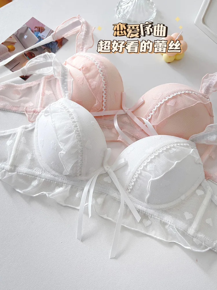 Japanese-style sweet bow lace lingerie for girls, pure and unrestrained, small-cut, curse-fitting bra
