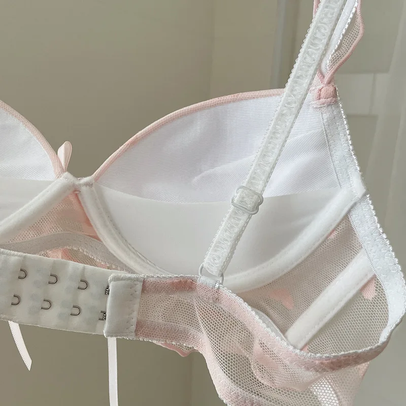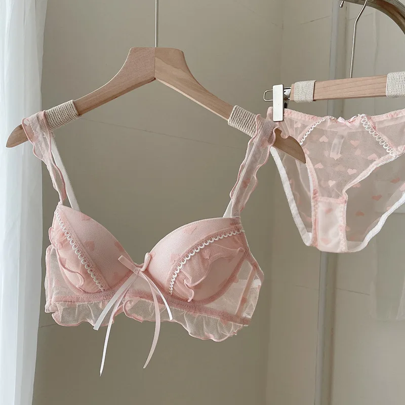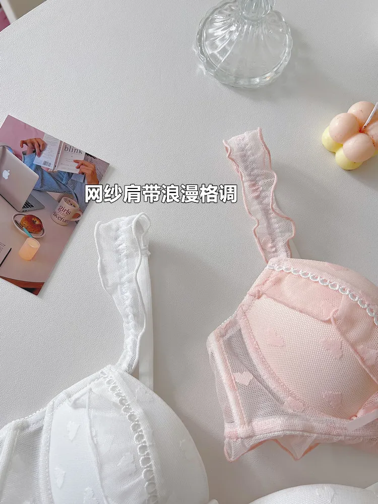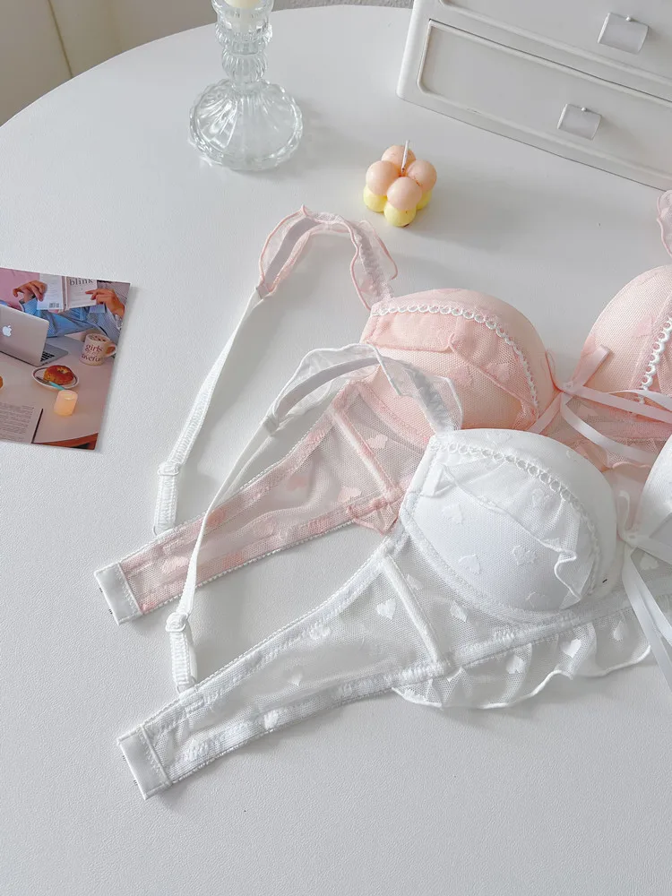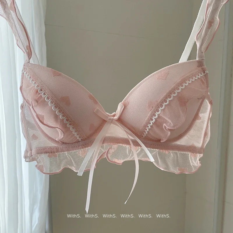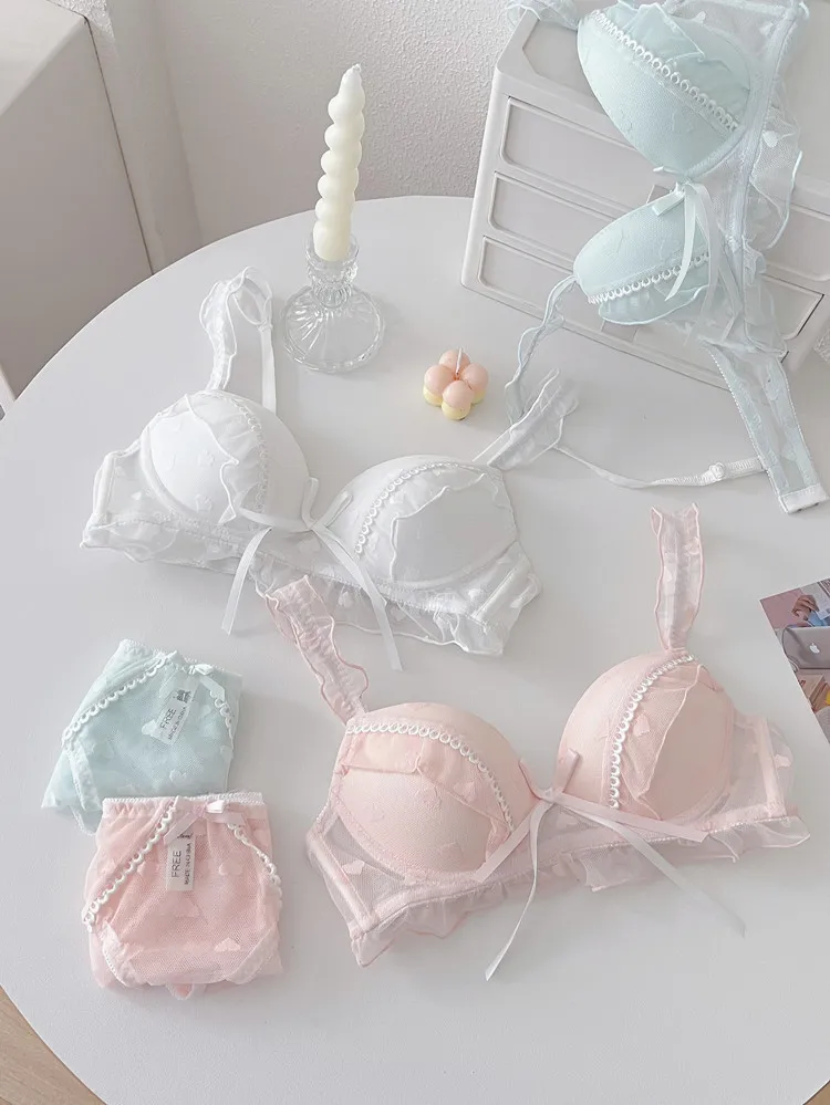 Japanese-style sweet bow lace lingerie for girls, pure and unrestrained, small-cut, curse-fitting bra
