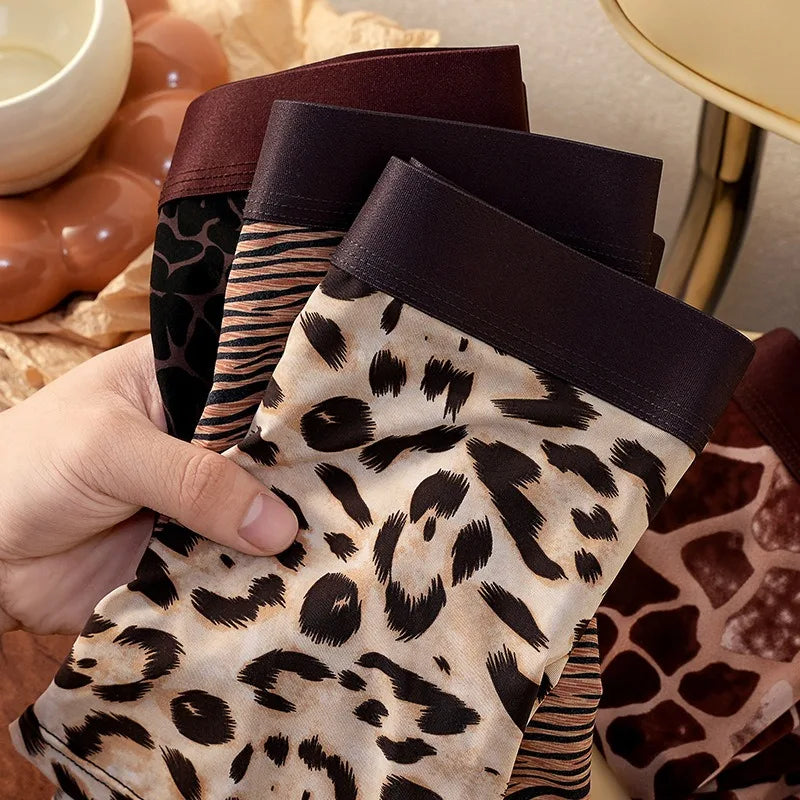 Middle Waist Leopard Print Boxers Mens Breathable Underwear Man Fashion Male Panties Convex Pouch Underpants Qucik-Dry Lingerie