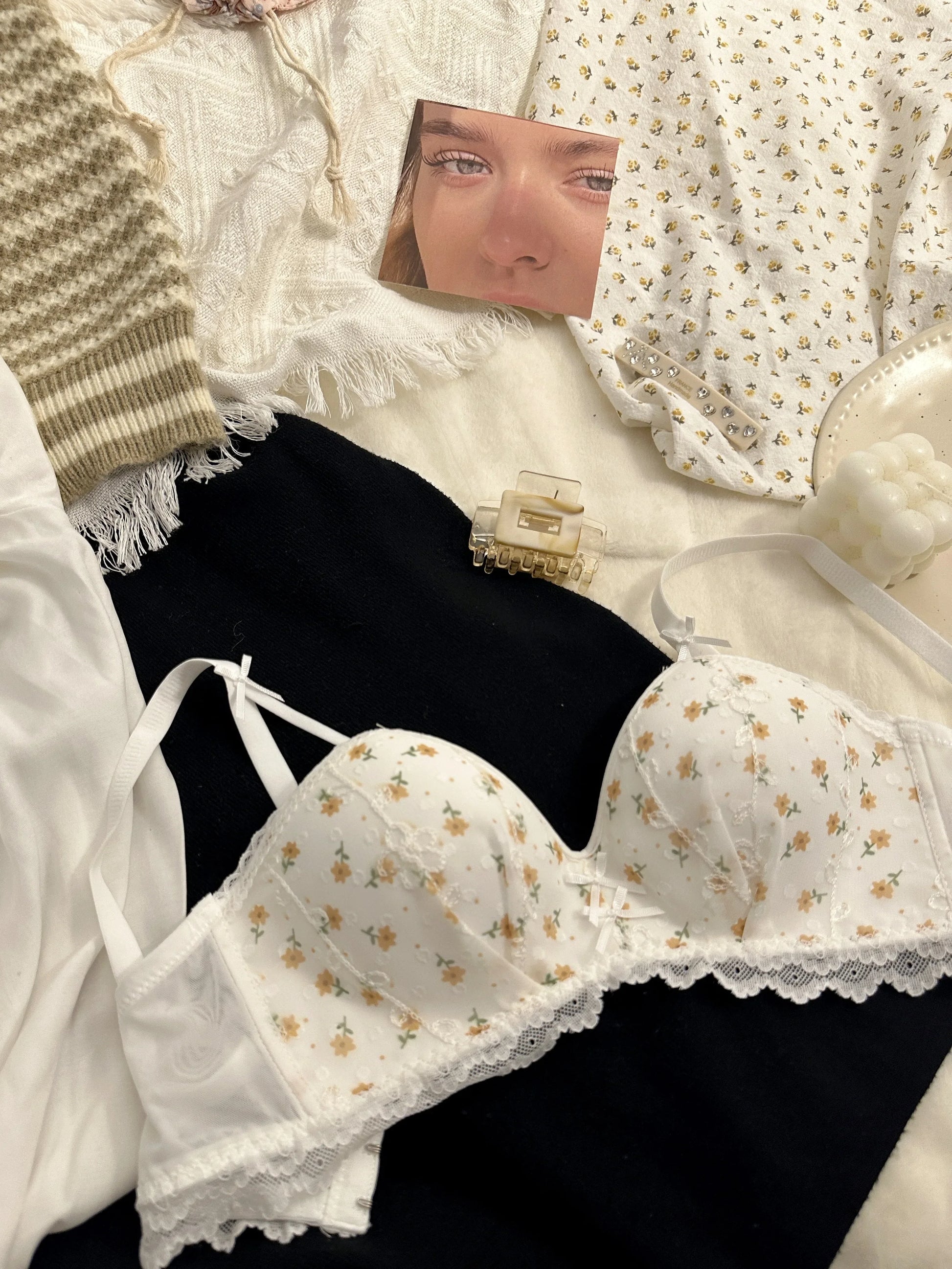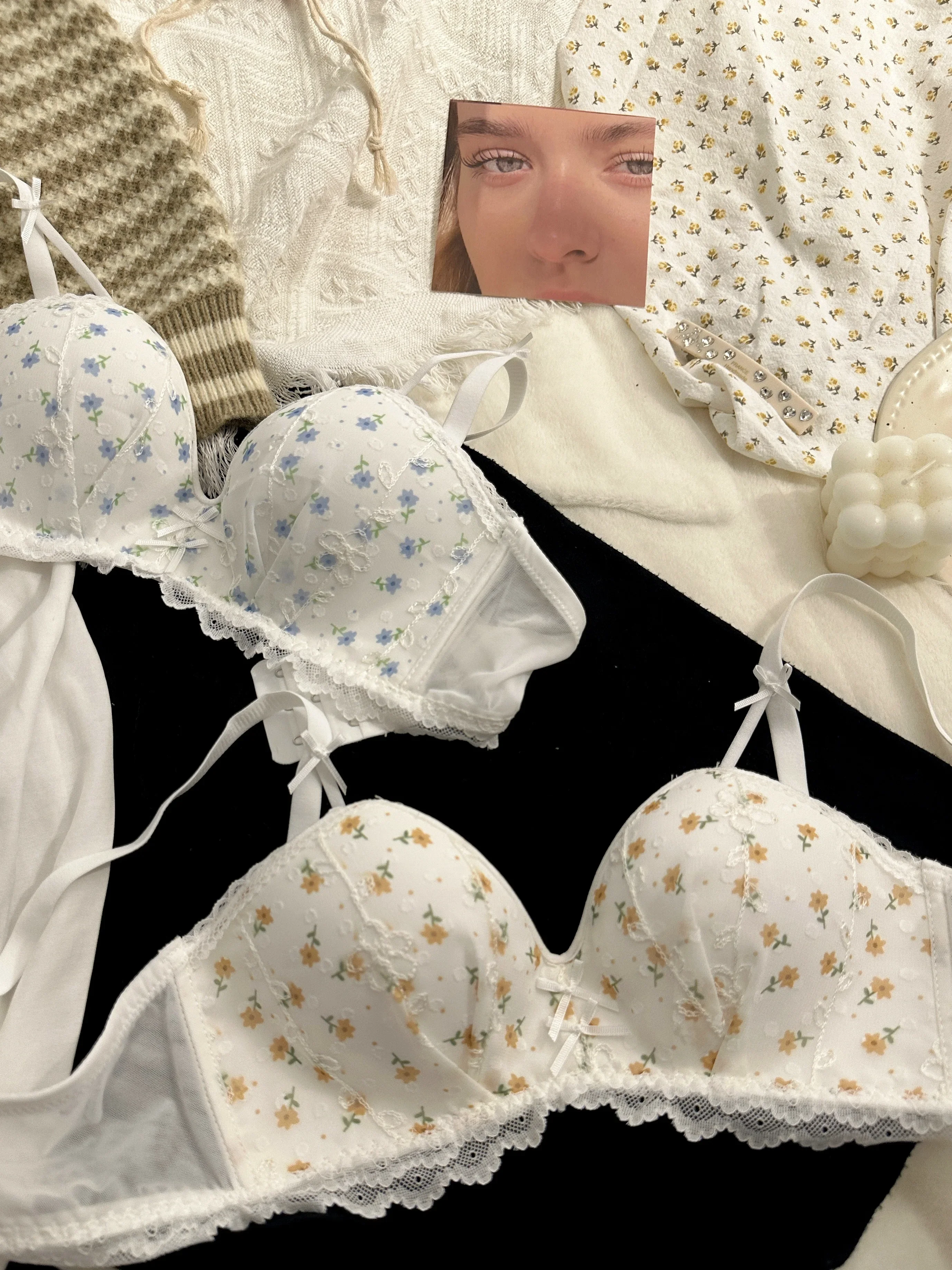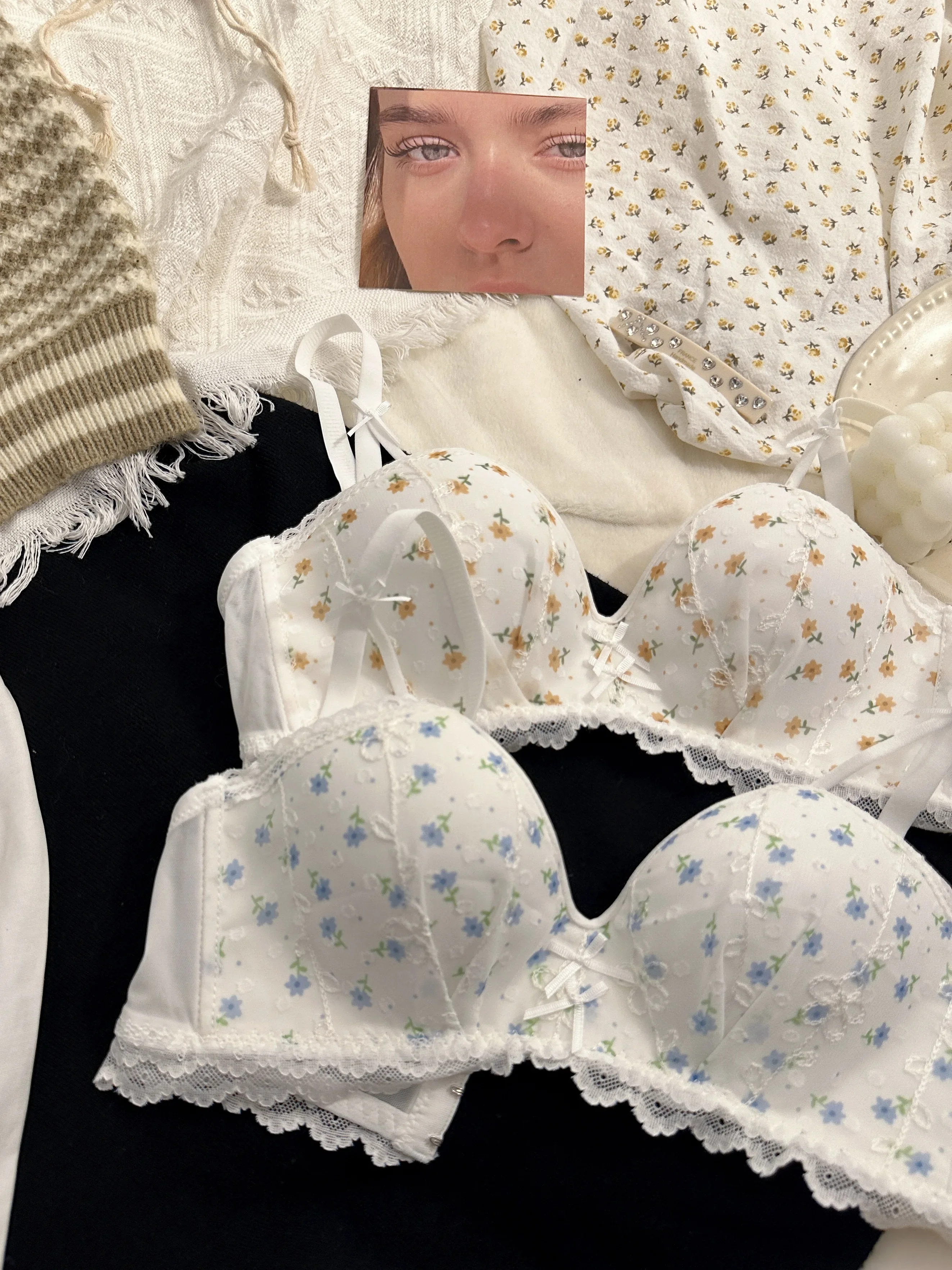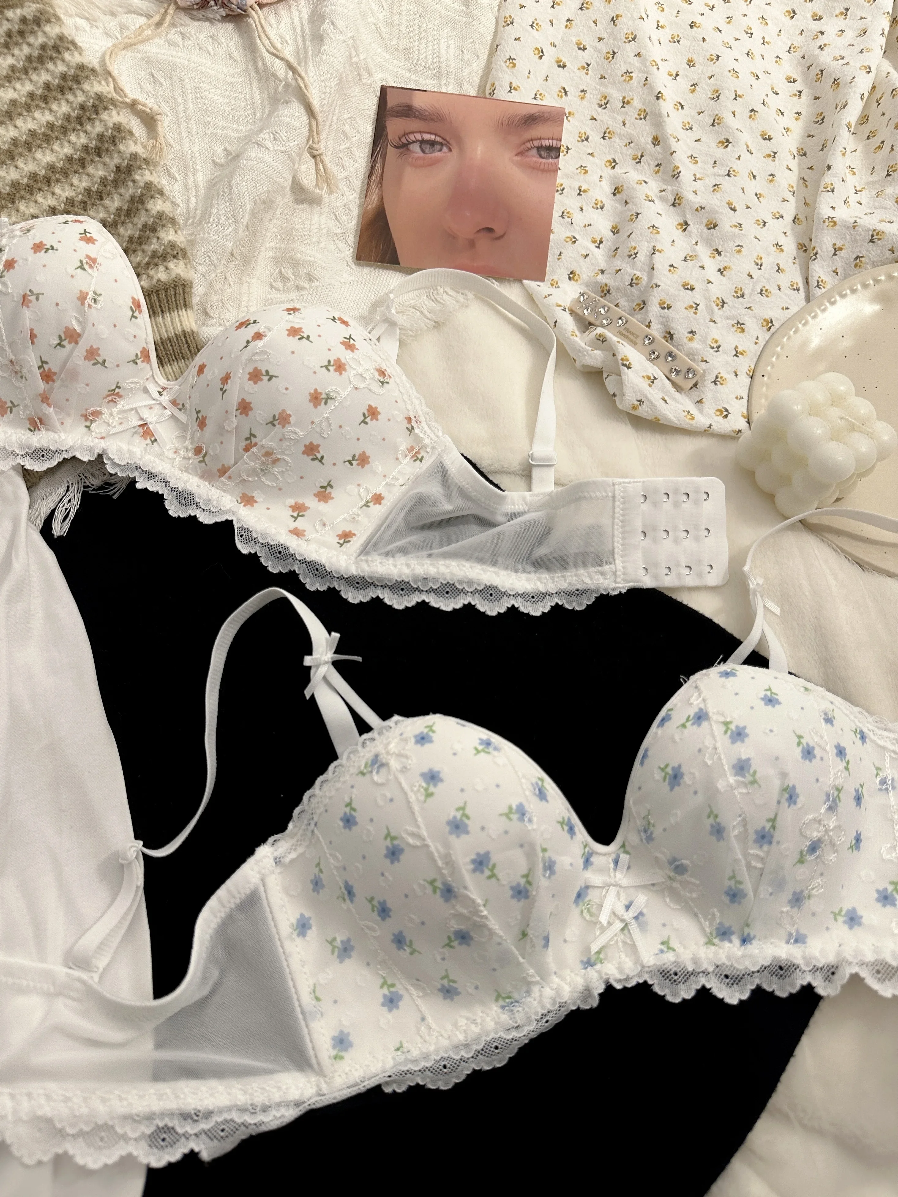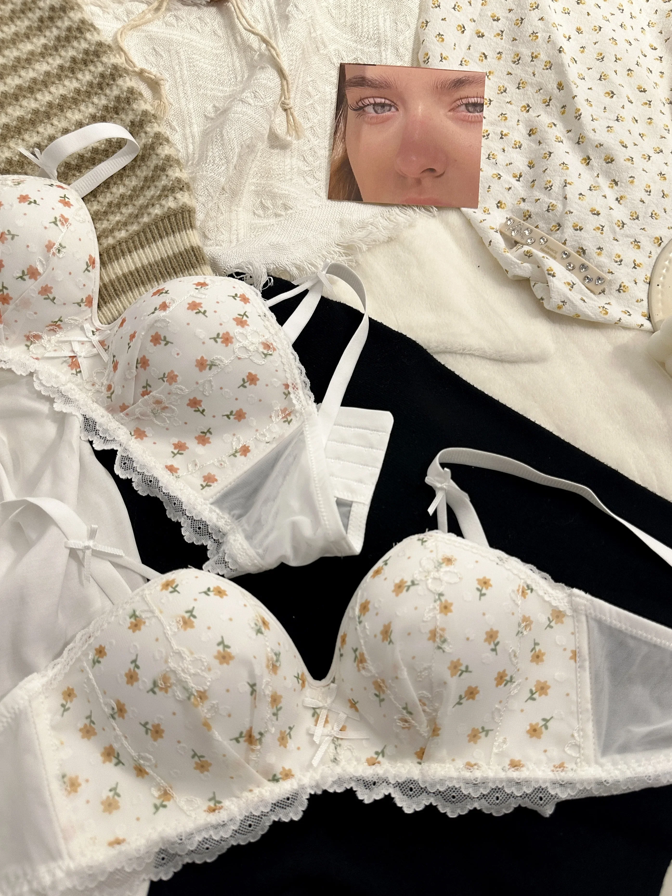 MOYISU JP & SK Lacy Lingerie Girl's Small Breast Pull Up No Underwire Top Support Anti-sag Retraction Sexy Floral Bra Cover Set