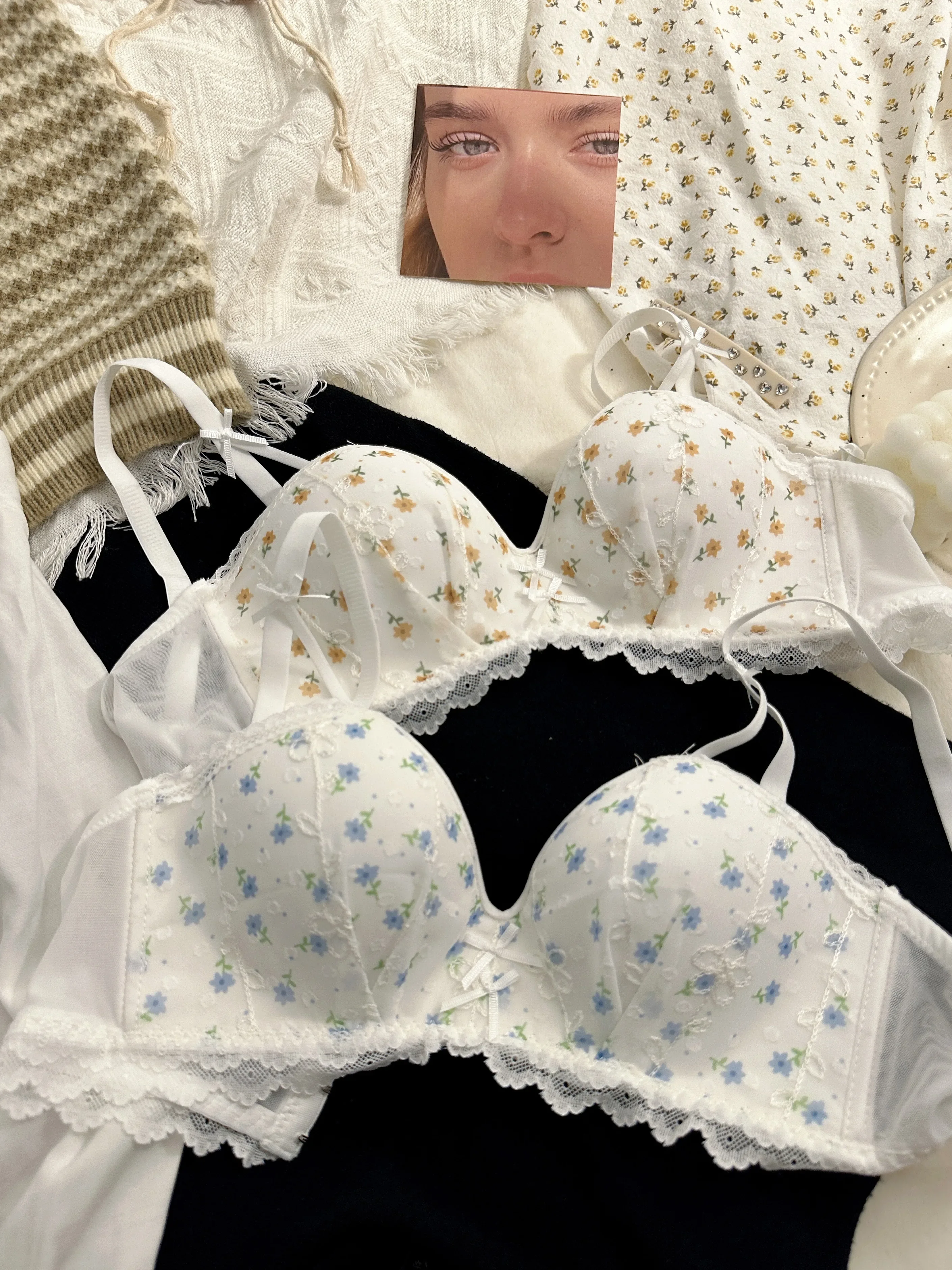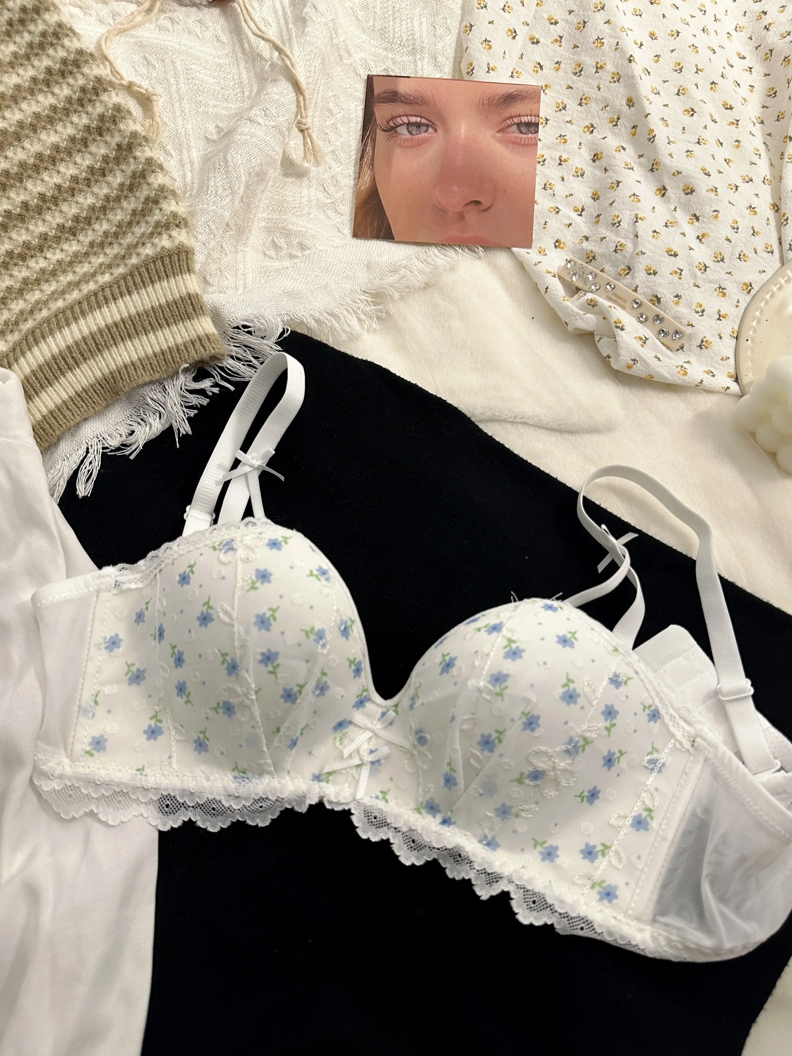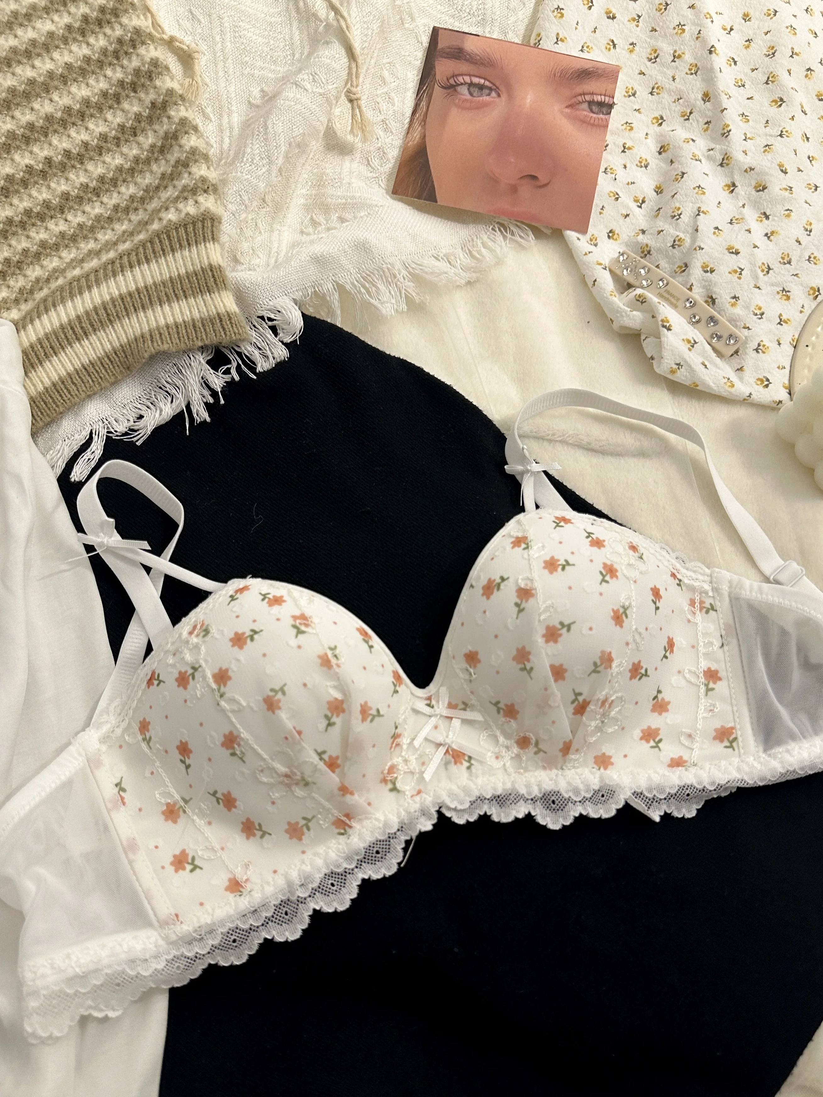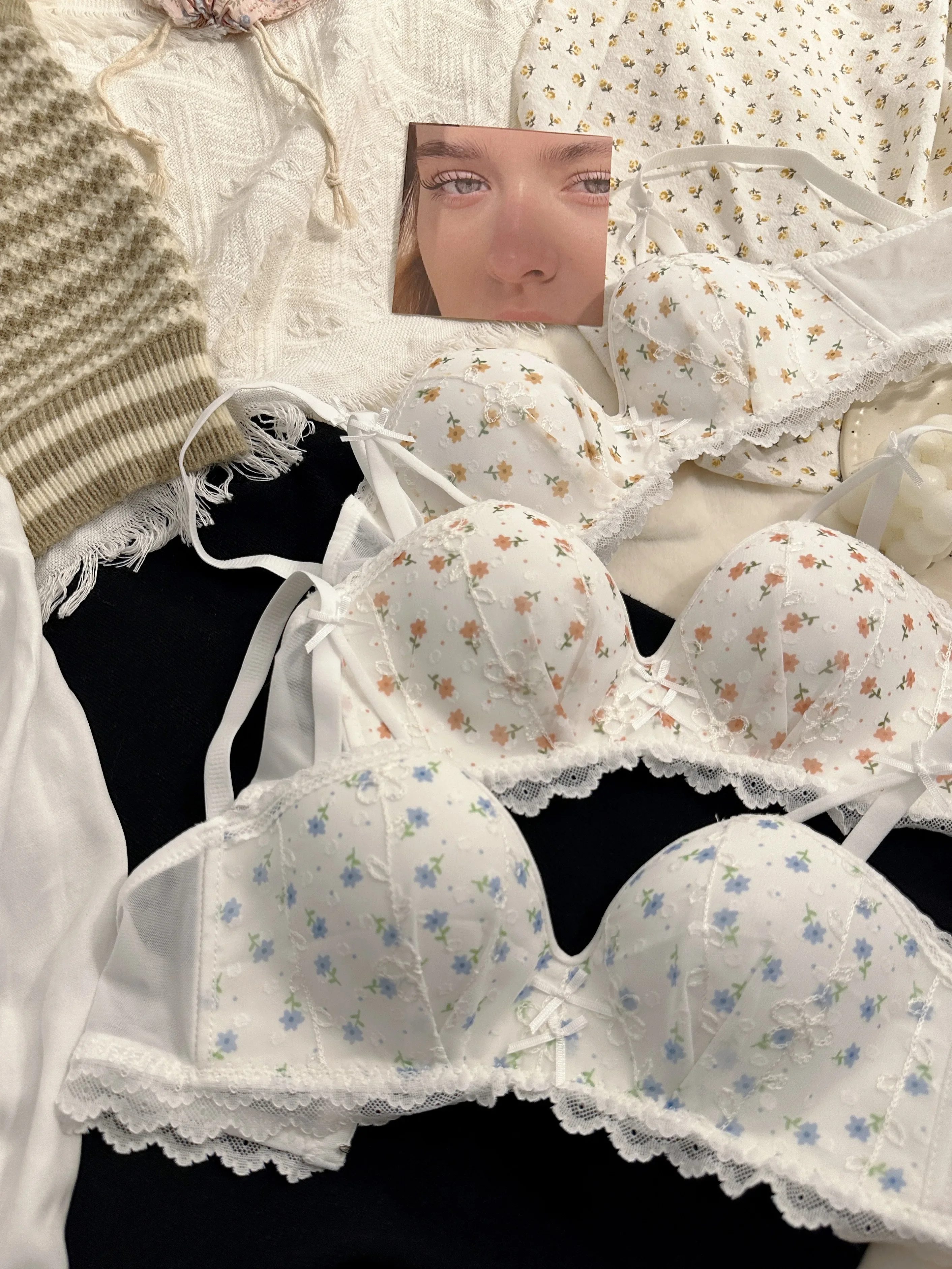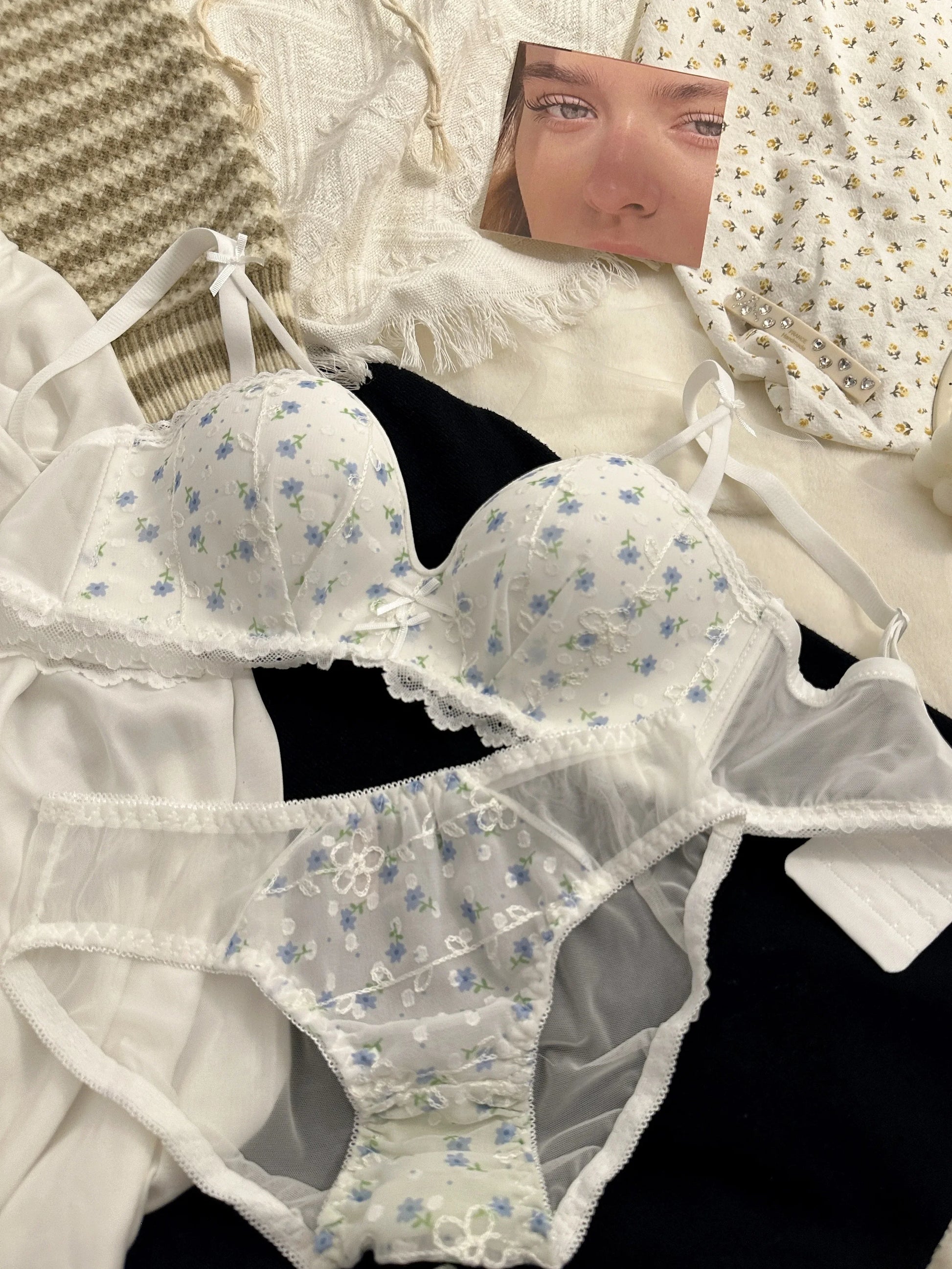 MOYISU JP & SK Lacy Lingerie Girl's Small Breast Pull Up No Underwire Top Support Anti-sag Retraction Sexy Floral Bra Cover Set