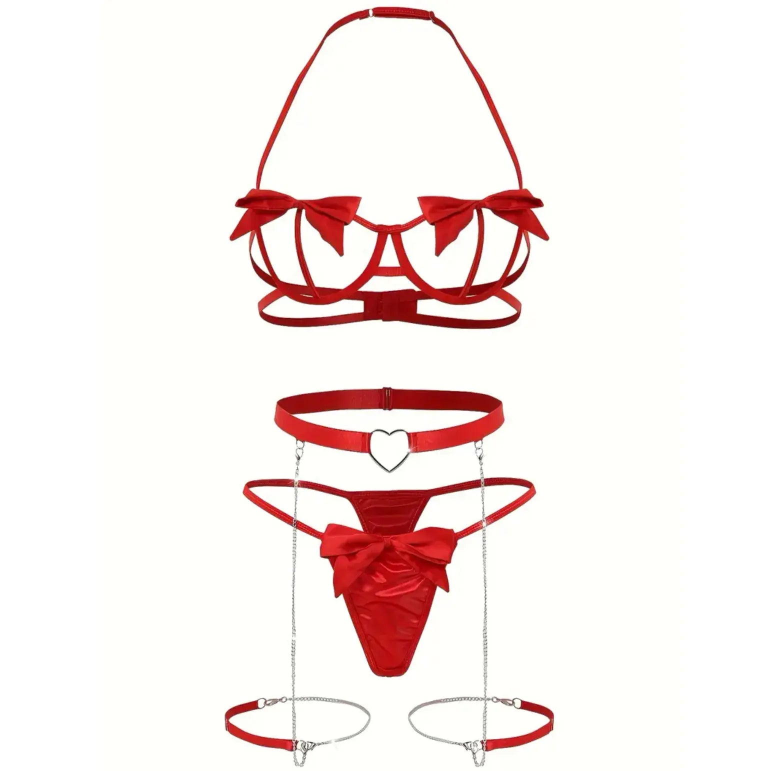Red Floral Lace Garter Lingerie Set With Choker Women Intimates 2024 Underwire Bra And Thongs Ladies Underwear Set