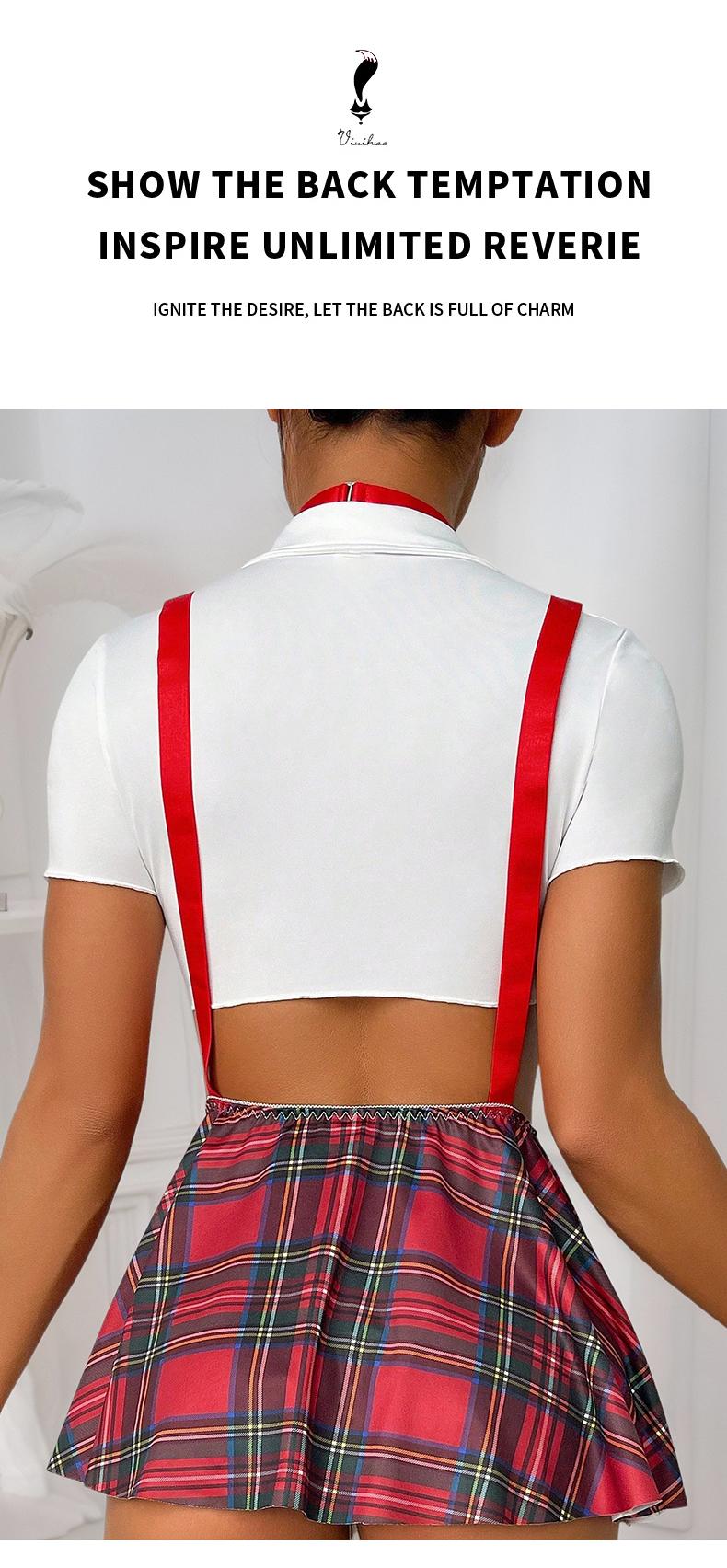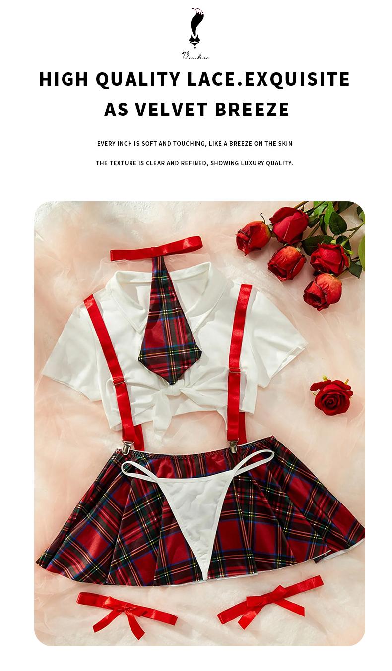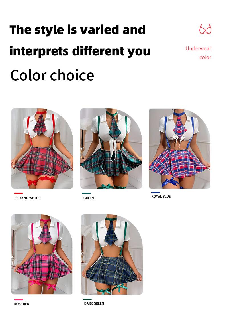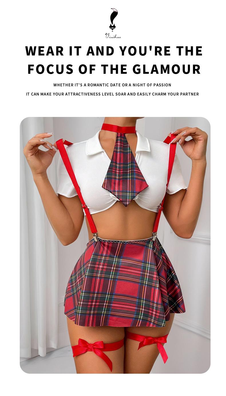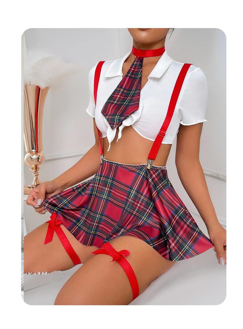 Sexy plaid printed cropped short underwear (without steel ring, thong, skirt, tie, a pair of leg rings) six piece set sexy temptation CospIay multi-color set