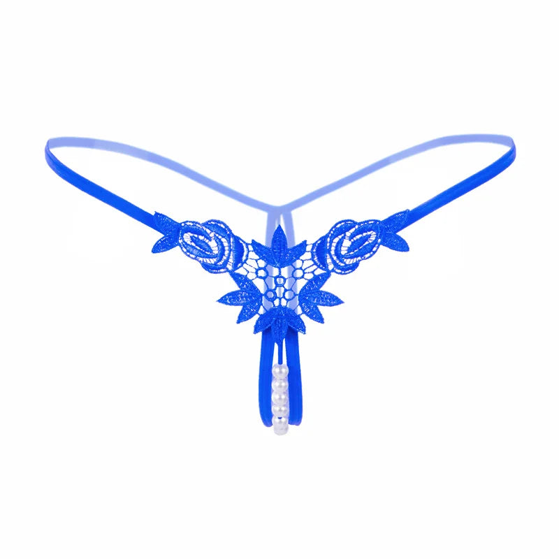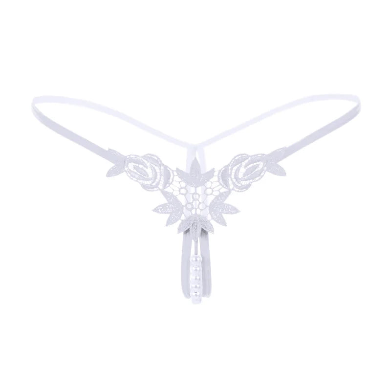 Sexy String Lace Underwear Women Back Bow Panties Women G String T-back Thong Transparent Lingerie Cute with Pearls Panties New