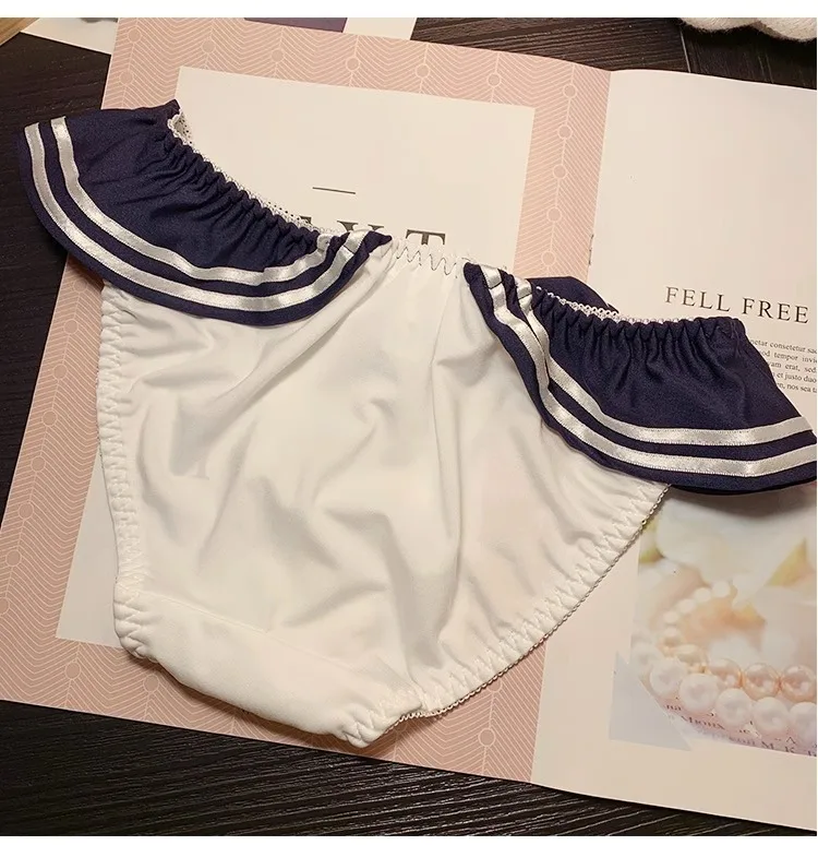 Women's bra set Japanese loli underwear female soft girl navy sweet cute without steel ring teenage sailor suit bra set