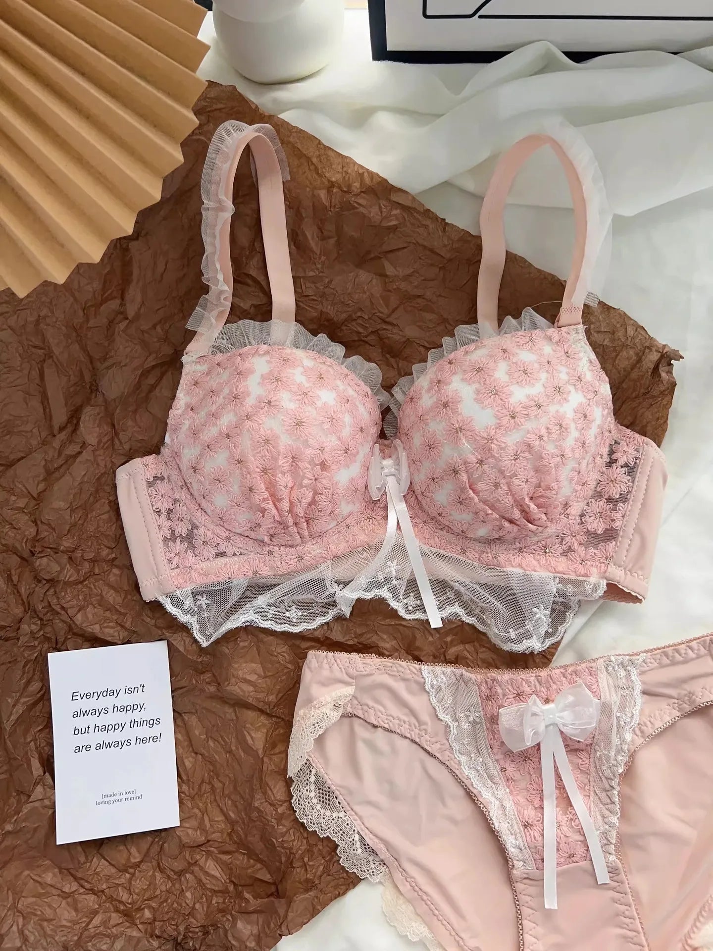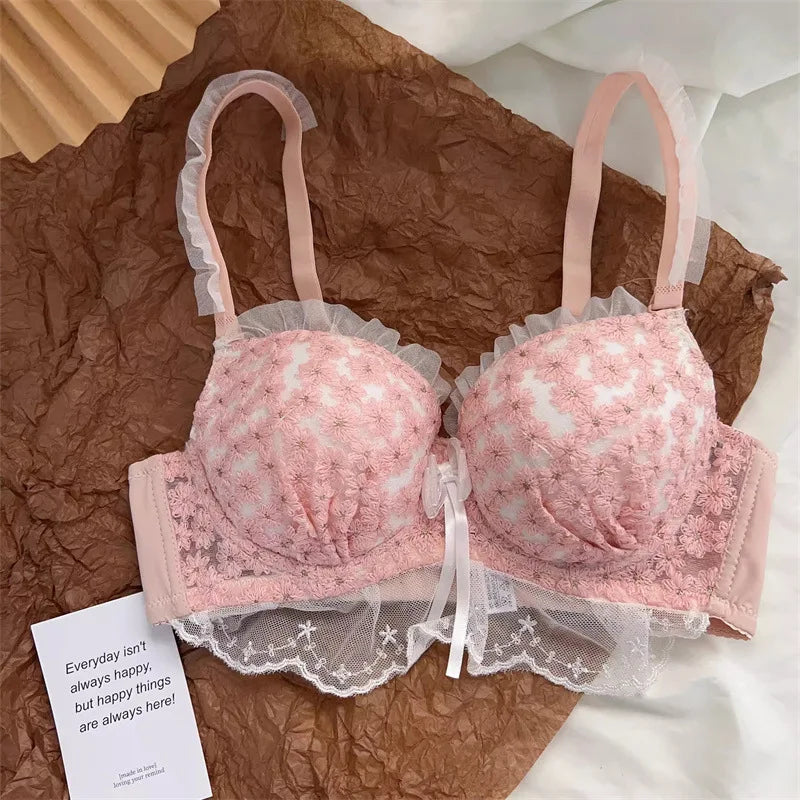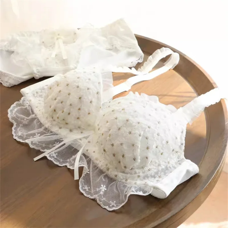 Women's Bra Set Small Breasts Gathered Upturned Girls Bra with Steel Ring Adjustable Collection of Breasts Bra Set
