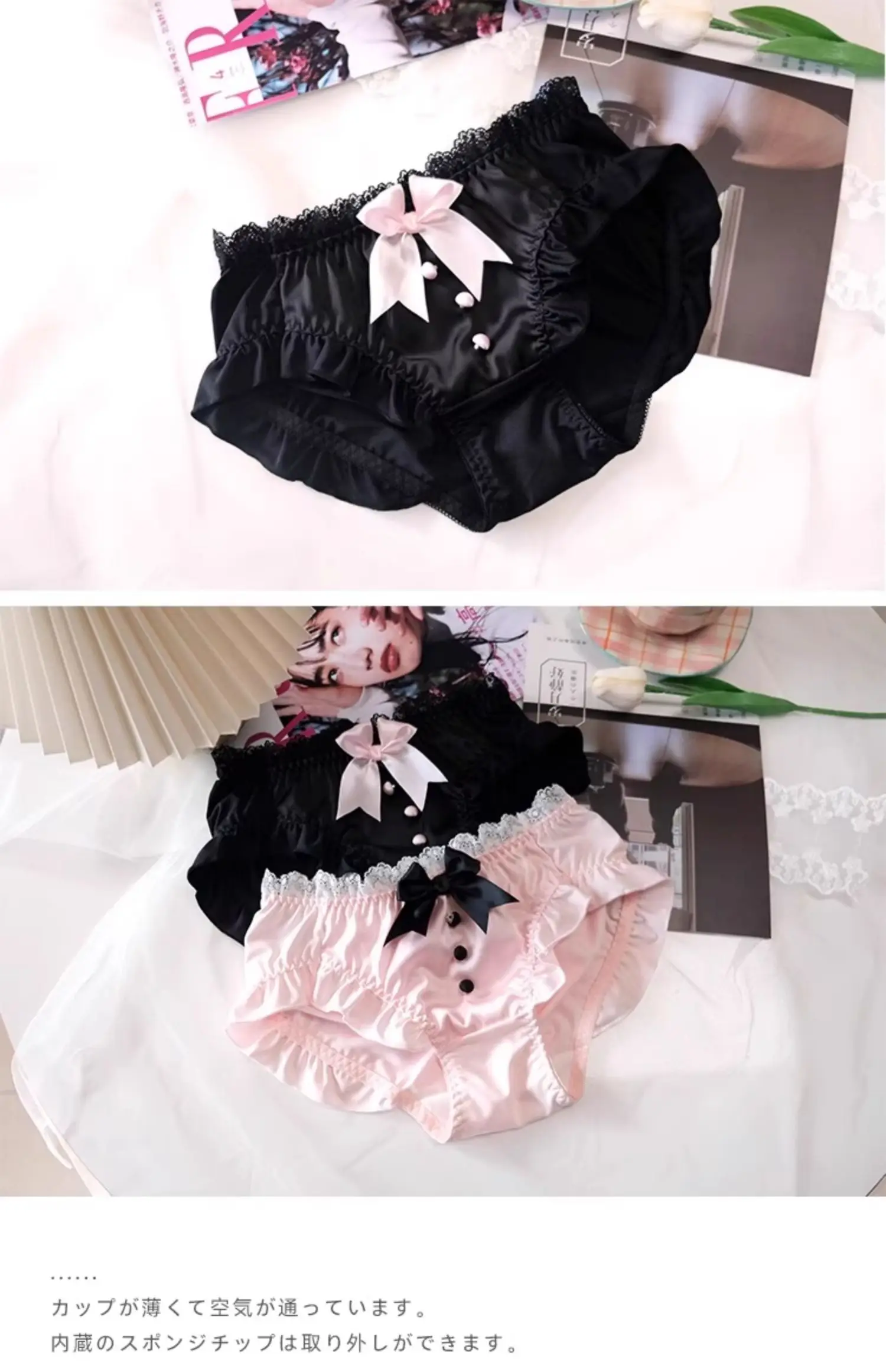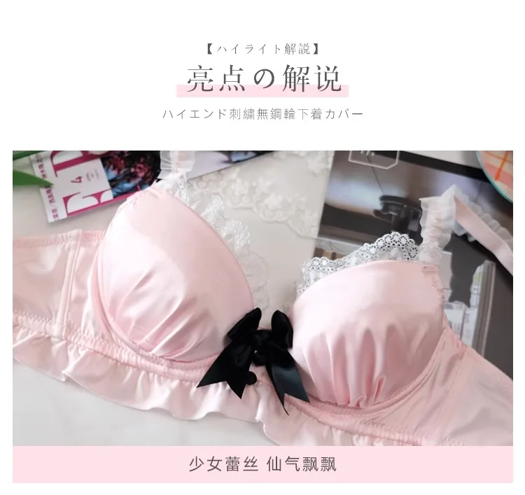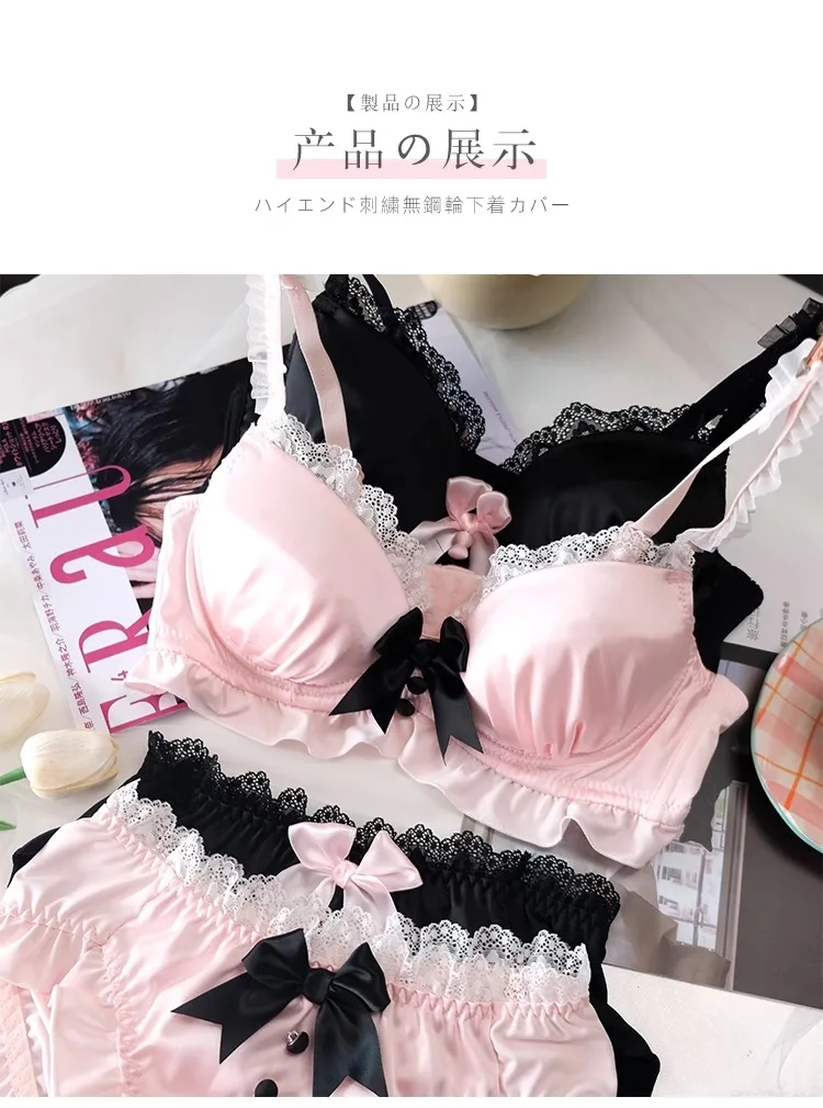 YUQI Kawaii Japanese Lolita Lingerie Set - Cute Bow Bra Cover & Panties for Small Chest, Pure Sexy Teen Girl Charm XS-S Cup Bra
